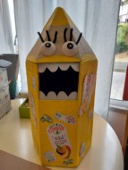 Em reunião com as crianças, ficou decidido fazer um ecoponto em forma de lápis pois estamos na escola. Com cartão realizou-se a forma redonda para fazer a forma do lápis. Pintaram de amarelo o cartão e colaram os recortes que […]