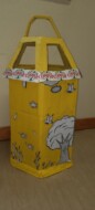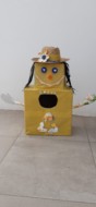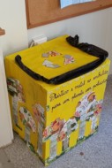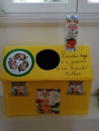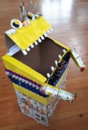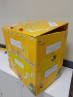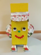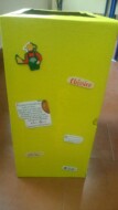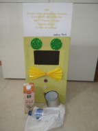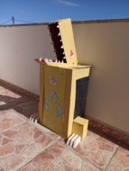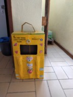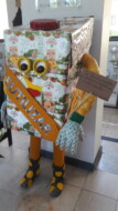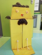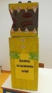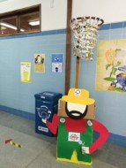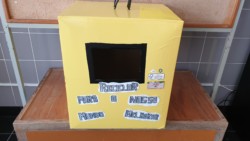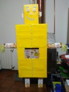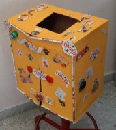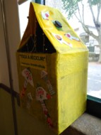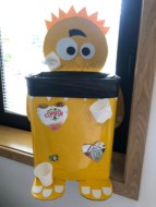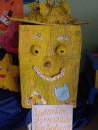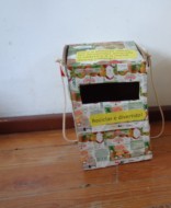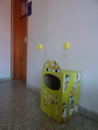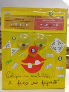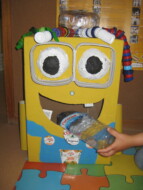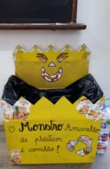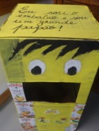 Pintamos uma caixa de amarelo; abrimos e lavamos os pacotes das embalagens tetrapak; recortamos e colamos os símbolos necessários; fizemos uma saia e decoramos; pernas e braços; a cabeça construímos com um garrafão - a boca é o local onde […]