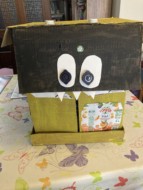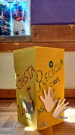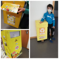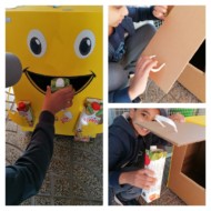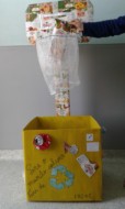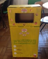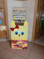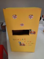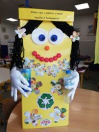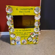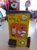 Construímos o ecoponto com uma caixa de papelão, tentamos moldar para que ficasse parecido a uma caixa tetra pak, reutilizamos papel EVA que tínhamos das decorações de Natal para forrar a caixa, reutilizamos também uma bola de esferovite das decorações […]