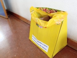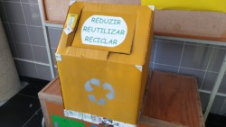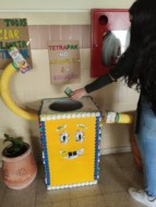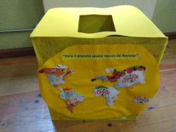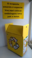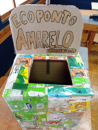 Legendas fotos: Foto A1- Construção do Ecoponto Amarelo Foto A2- Detalhe dos símbolos Tetra pack e FSC e da marca Compal Foto A3- Ecoponto no Laboratório de Biologia Remendei com fita-cola uma caixa de cartão usada e depois pintei-a com […]