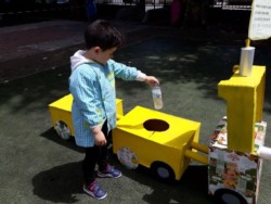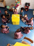 As crianças de 3 anos da sala Bordalo Pinheiro fizeram o ecoponto amarelo. Começaram por ver os ecopontos que são utilizados na sala e relembrar a sua correta utilização. Pintaram um caixote de amarelo e após debate de ideias decidiram […]