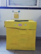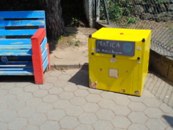 Legendas fotos: Foto C1- Construção do Ecoponto Amarelo Foto C2- Detalhe dos símbolos Tetra pack e FSC e da marca Compal Foto C3- Ecoponto no átrio do Bloco A Usei uma caixa velha que pintei com tinta amarela. Depois de […]