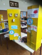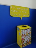 Construímos o ecoponto amarelo para a sala uma vez que só tínhamos o ecoponto azul. Iniciamos este projeto primeiro com a criação de um painel sobre o ecoponto amarelo onde pintamos e recortarmos imagens de panfletos alusivas ao que se […]