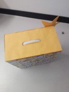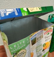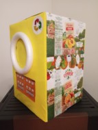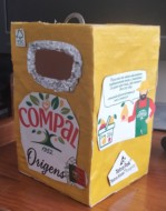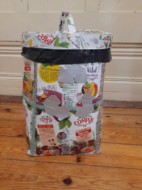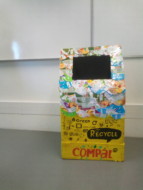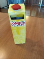 "Neste trabalho utilizei embalagens de Compal vazios, cola quente, tesoura, régua e lápis de carvão. Primeiro comecei por abrir todos os Compais que utilizei e lavei-os por dentro e por fora. Depois colei três embalagens Compal dos pequenos e abertos […]