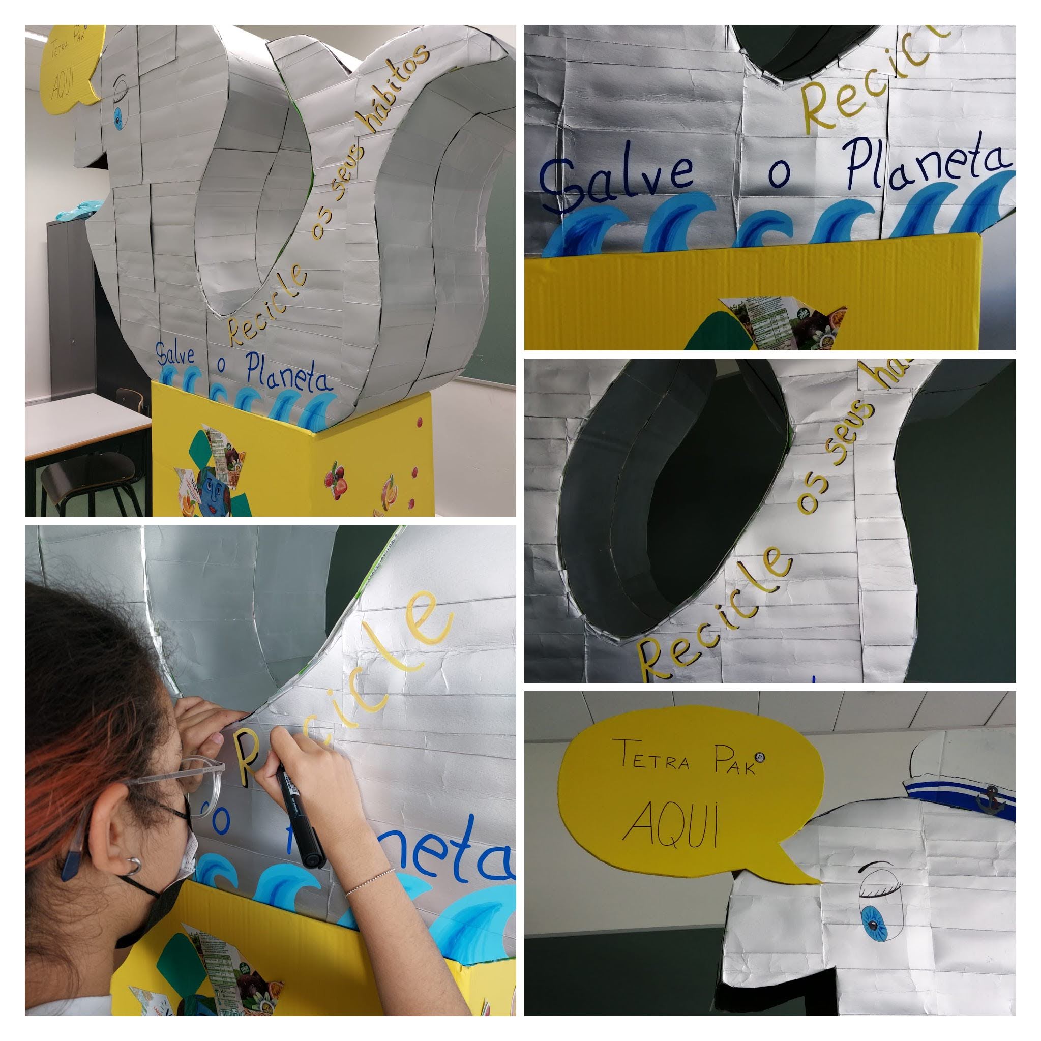 Numa segunda fase, os alunos recolheram embalagens Tetra Pak, sobretudo Compal, para a sua execução. Foram utilizados, fundamentalmente materiais reciclados, designadamente embalagens Tetra Pak e cartão aproveitando as embalagens dos Kits digitais.
