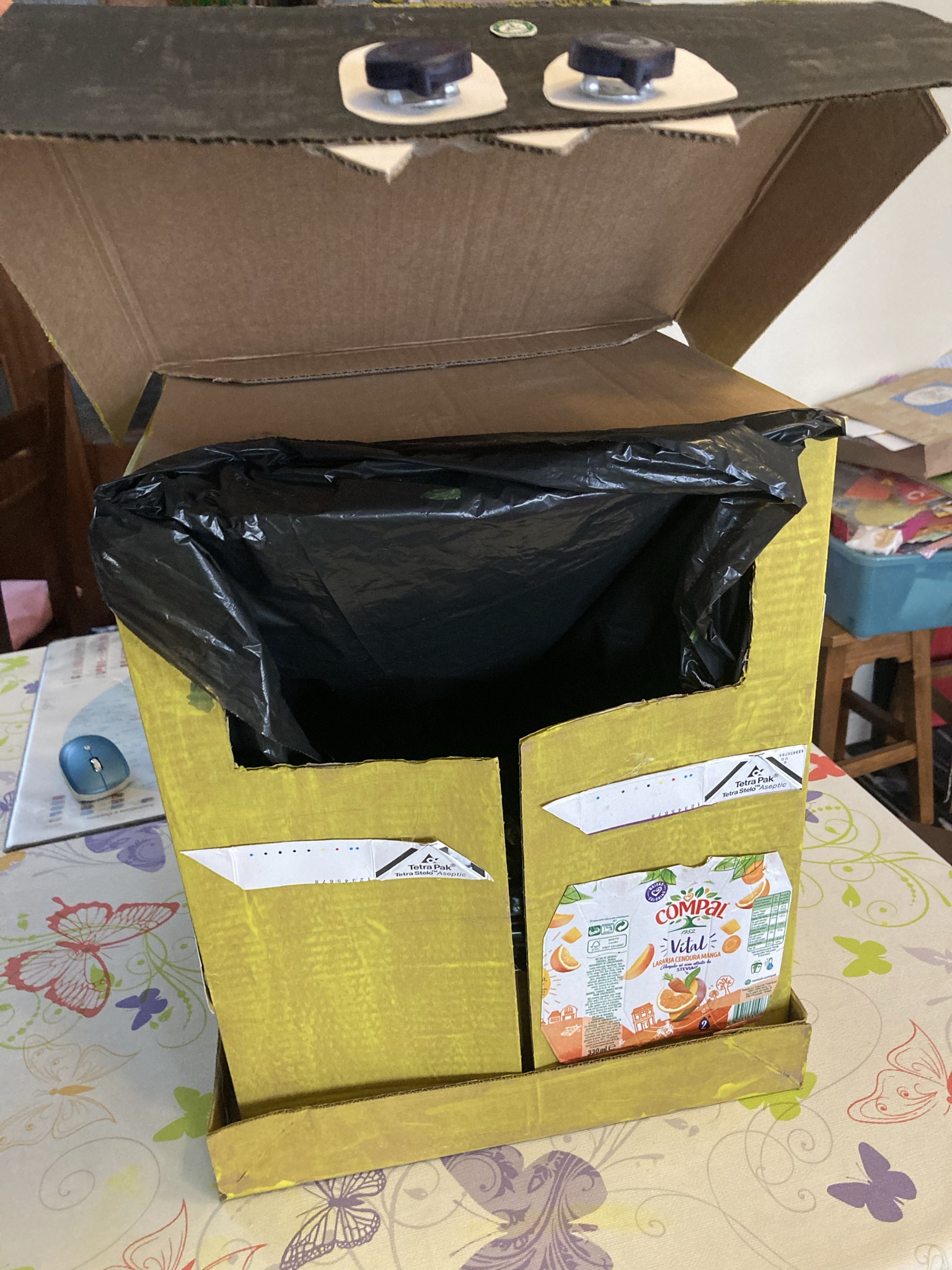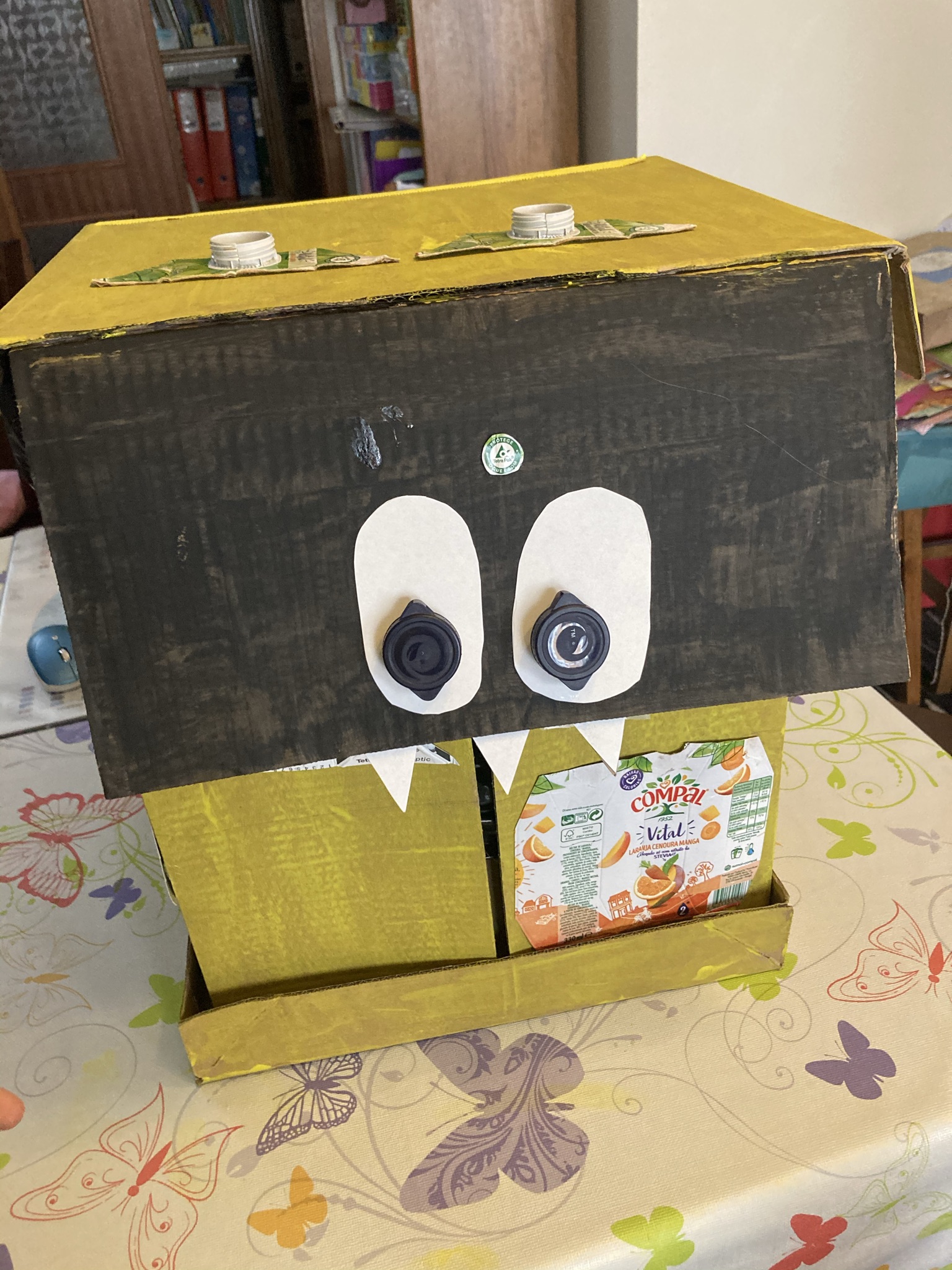 A Ana Carolina decidiu criar o seu monstro amarelo, com caixa de cartão, embalagens TetraPak da Compal, que usou nos pormenores, cola e tinta. Trabalhou em casa, com a ajuda da família e apesar de ter dado algum trabalho, acabou por ser divertido. O seu trabalho está em exposição na sala da Turma 4ºA da escola Cidade de Castelo Branco.