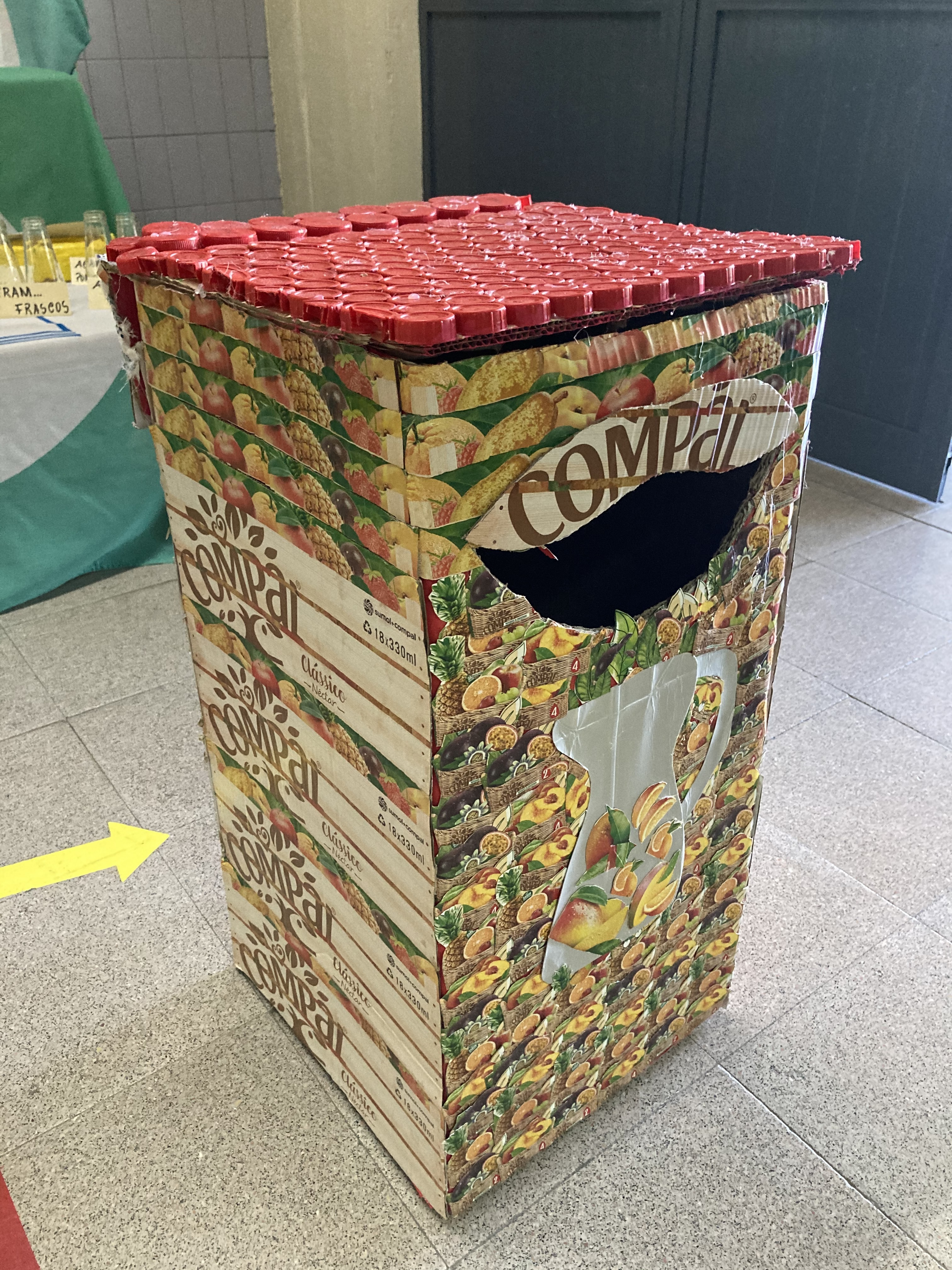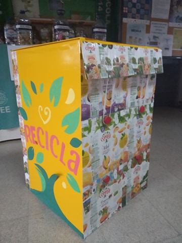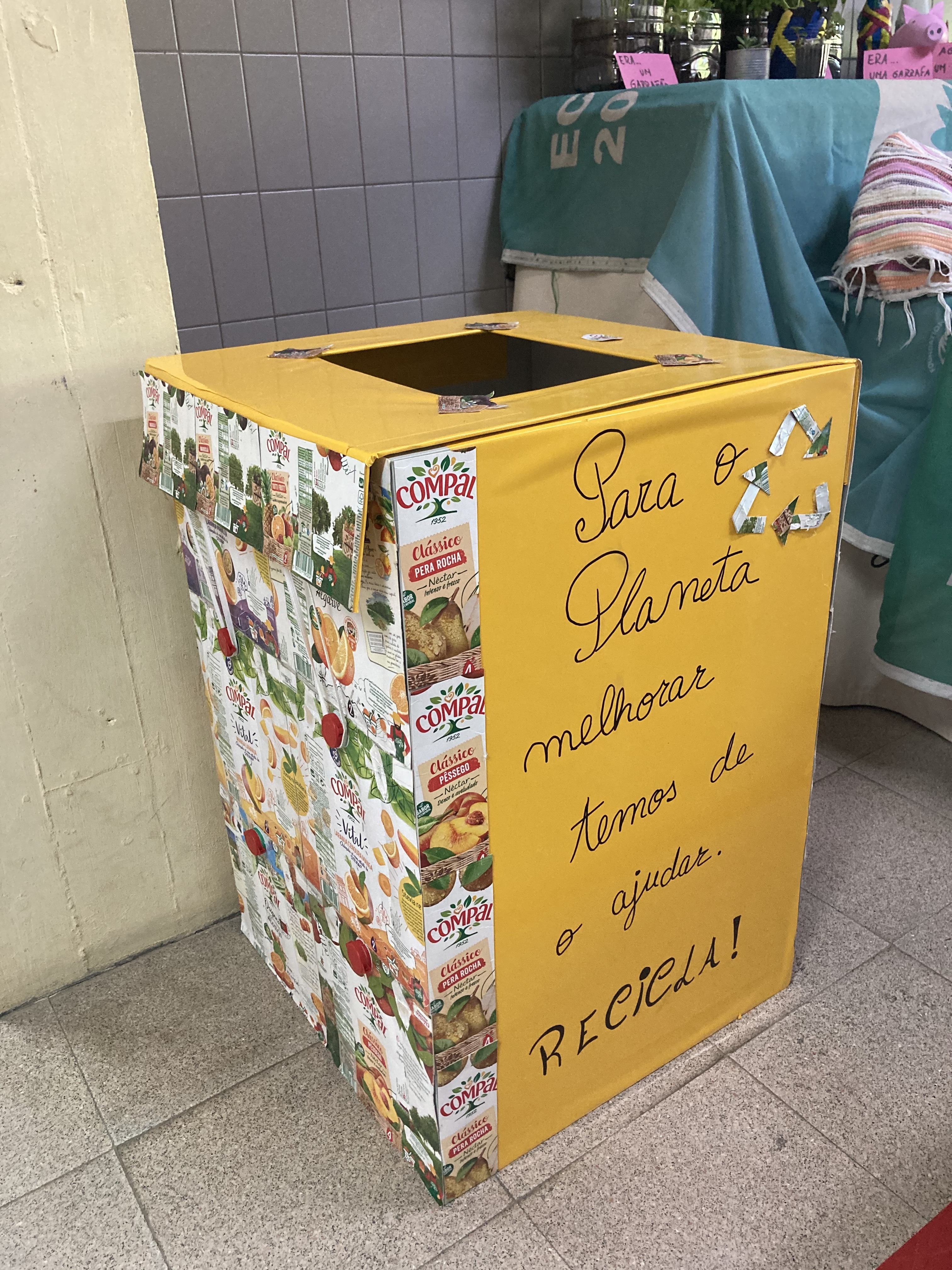 De seguida passaram à recolha dos materiais necessários para a atividade, nomeadamente embalagens da Compal, não só a partir de casa de cada um, mas também apelando à recolha das referidas embalagens no bufete escolar.