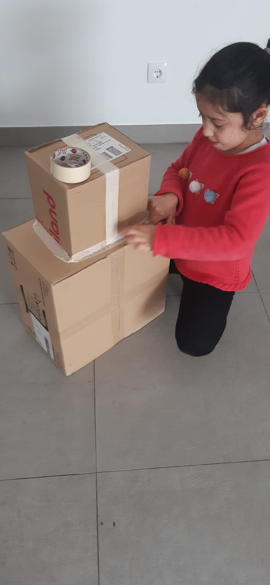 1º- Começaram por arranjar 2 caixas, uma maior que outra e colaram com fita cola