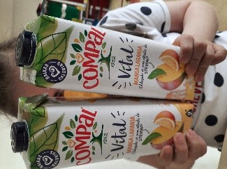 Metodologia: Procedeu-se à recolha de várias embalagens TetraPak da marca Compal, preferencialmente de cor amarela, junto dos alunos e Encarregados de Educação, assim como caixas de papelão recolhida na secretaria da escola. Foi identificado e explicitado o significado do selo FSC.