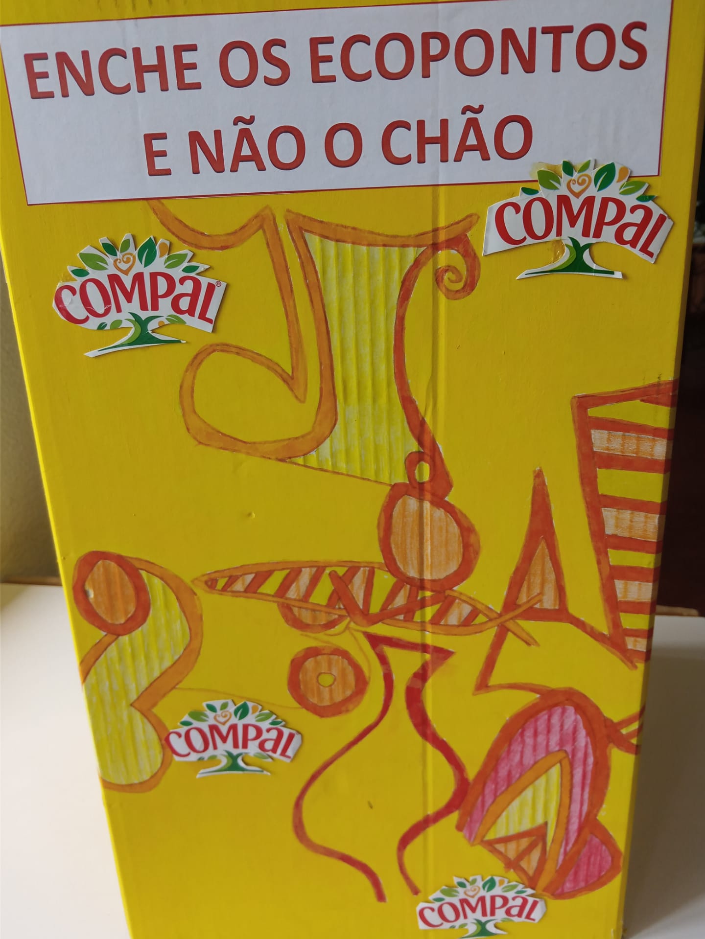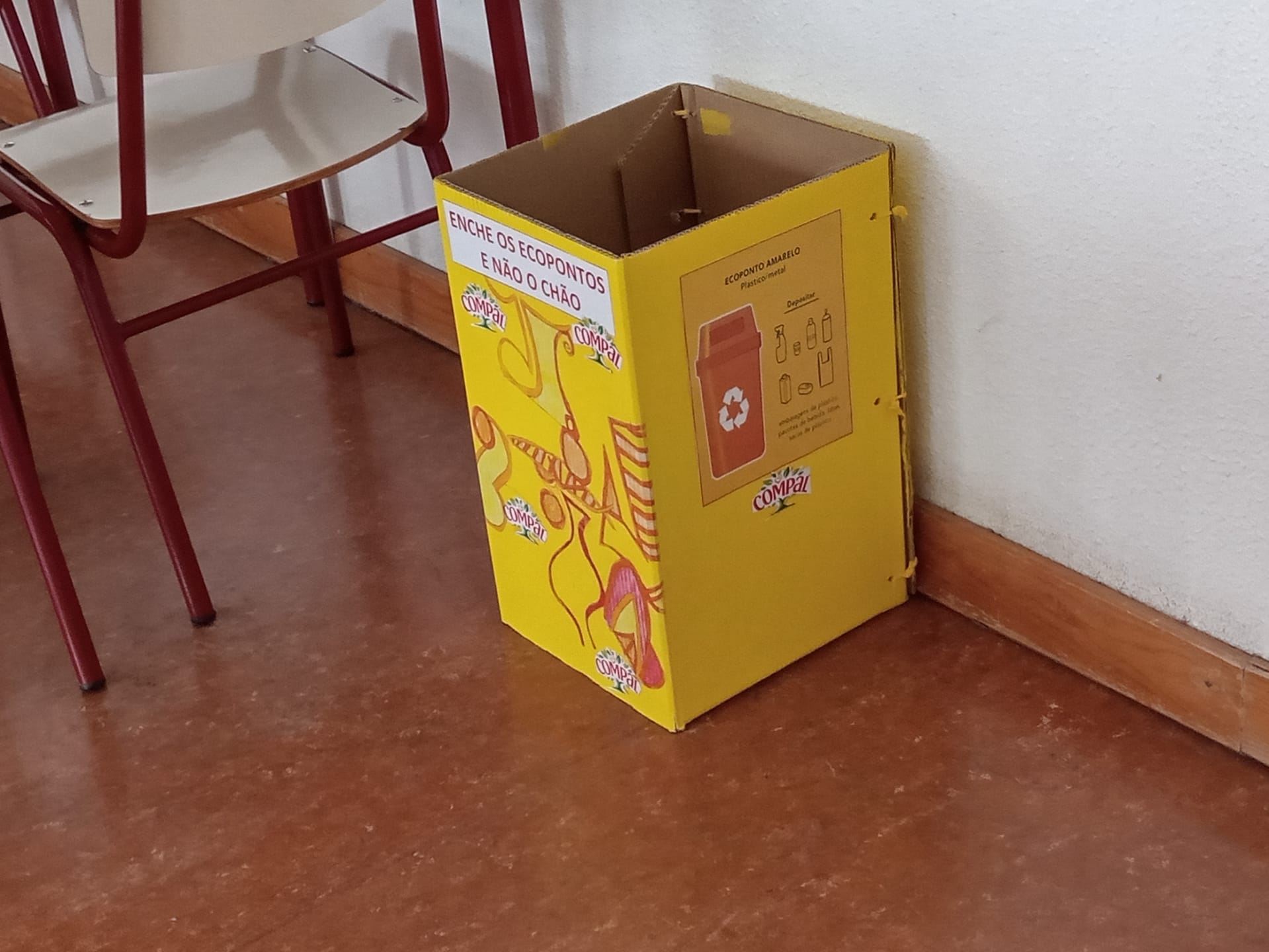 Os alunos do 9ºD construíram 3 Ecopontos Amarelos diferentes com cartão, utilizando algumas embalagens Tetra Pak da Marca Compal com o selo FSC, cola, lã, agulhas, tinta amarela e papel impresso. Esta atividade realizou-se de forma interdisciplinar. Nas aulas de Ciências Naturais recordaram a importância da separação de resíduos e elaboraram as frases, nas aulas de Matemática foram realizadas as planificações dos ecopontos e nas aulas de Educação Visual construiram-se e pintaram-se os mesmos. Os alunos denominaram este projeto de Ambient'ARTE. Foram construídos 23 caixotes no total e colocados em várias salas da escola, dando cumprimento ao plano de ação.