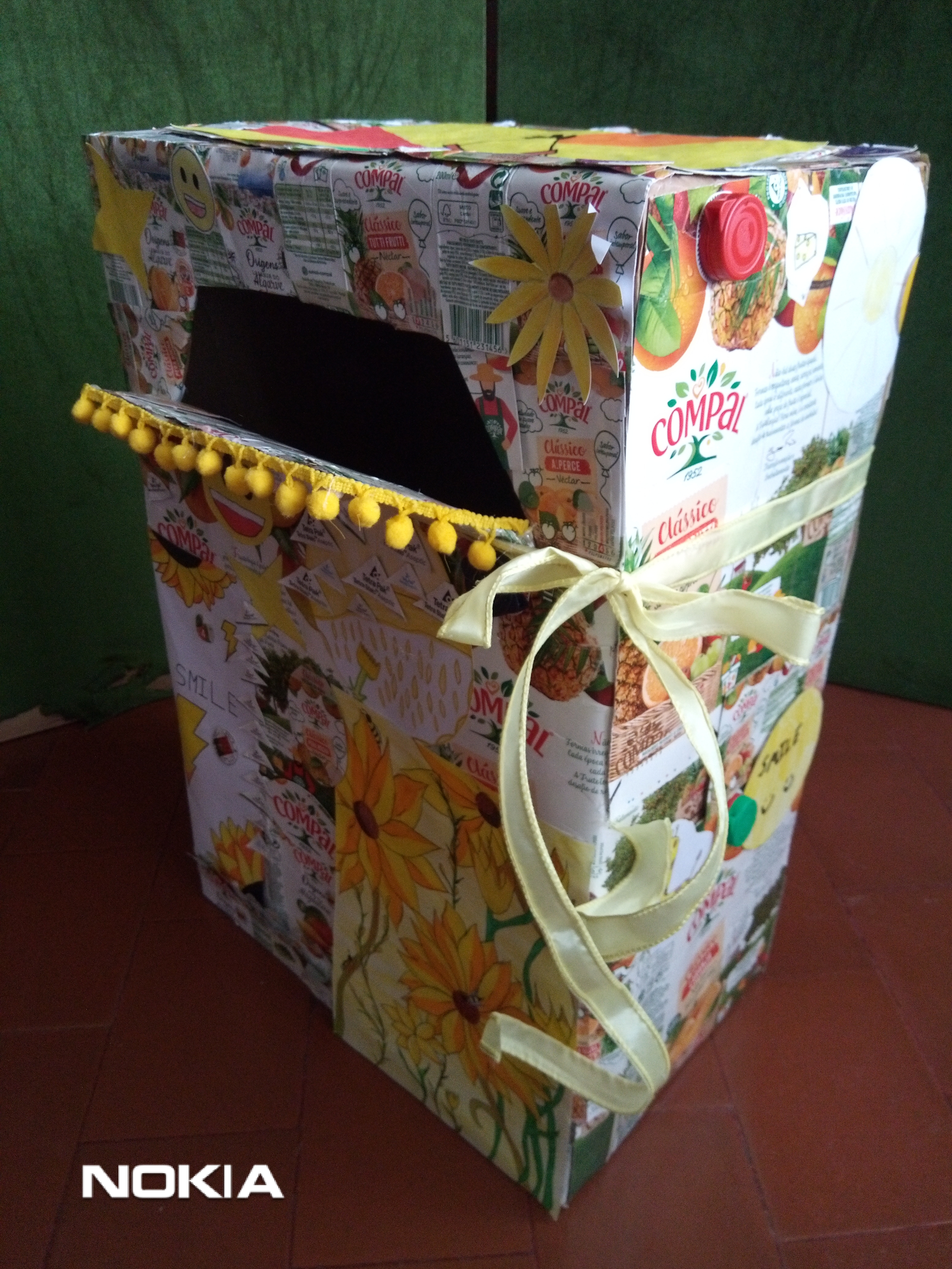 Depois da visualização de alguns vídeos sobre a sustentabilidade das florestas como forma de motivação, a turma iniciou a realização do projeto, limpeza e preparação das embalagens recolhidas. De seguida deu-se forma ao caixote de cartão que serviu de base ao trabalho, cortando e colando. Os alunos realizaram desenhos de vários elementos que seguidamente pintaram em diversos tons de amarelo e outras cores quentes. Por fim, todo o caixote foi coberto com pedaços de embalagens Compal, símbolos TetraPak e FSC.