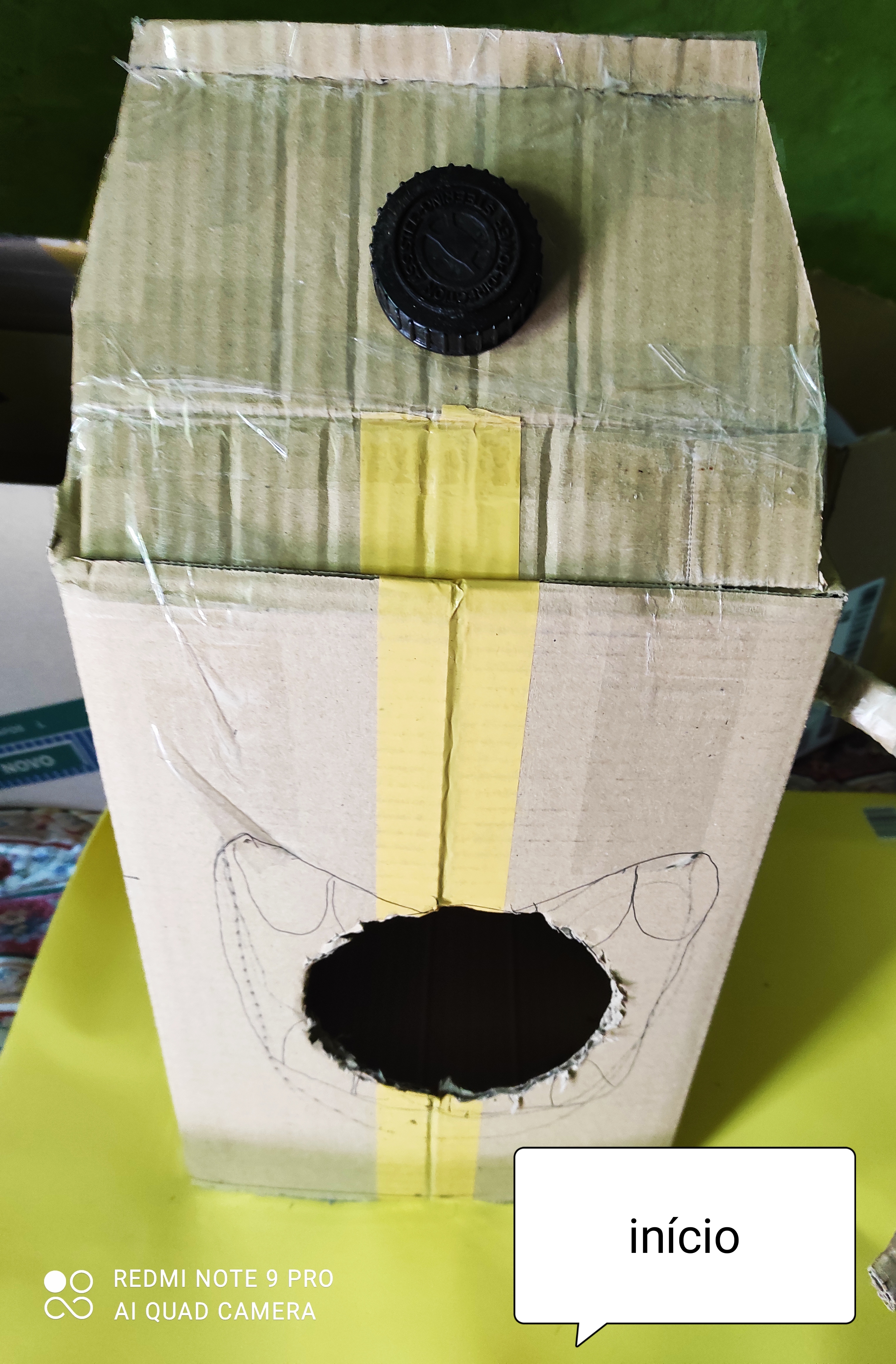 Construímos o ecoponto com uma caixa de papelão, tentamos moldar para que ficasse parecido a uma caixa tetra pak, reutilizamos papel EVA que tínhamos das decorações de Natal para forrar a caixa, reutilizamos também uma bola de esferovite das decorações da páscoa e pintamos com guache para representar o planeta Terra. Usamos ainda as embalagens de Compal para decorar e são visíveis ainda os símbolos da Tetra Pack e FSC. A mensagem que tentamos transmitir è que ao reciclar contribuímos para um mundo melhor.