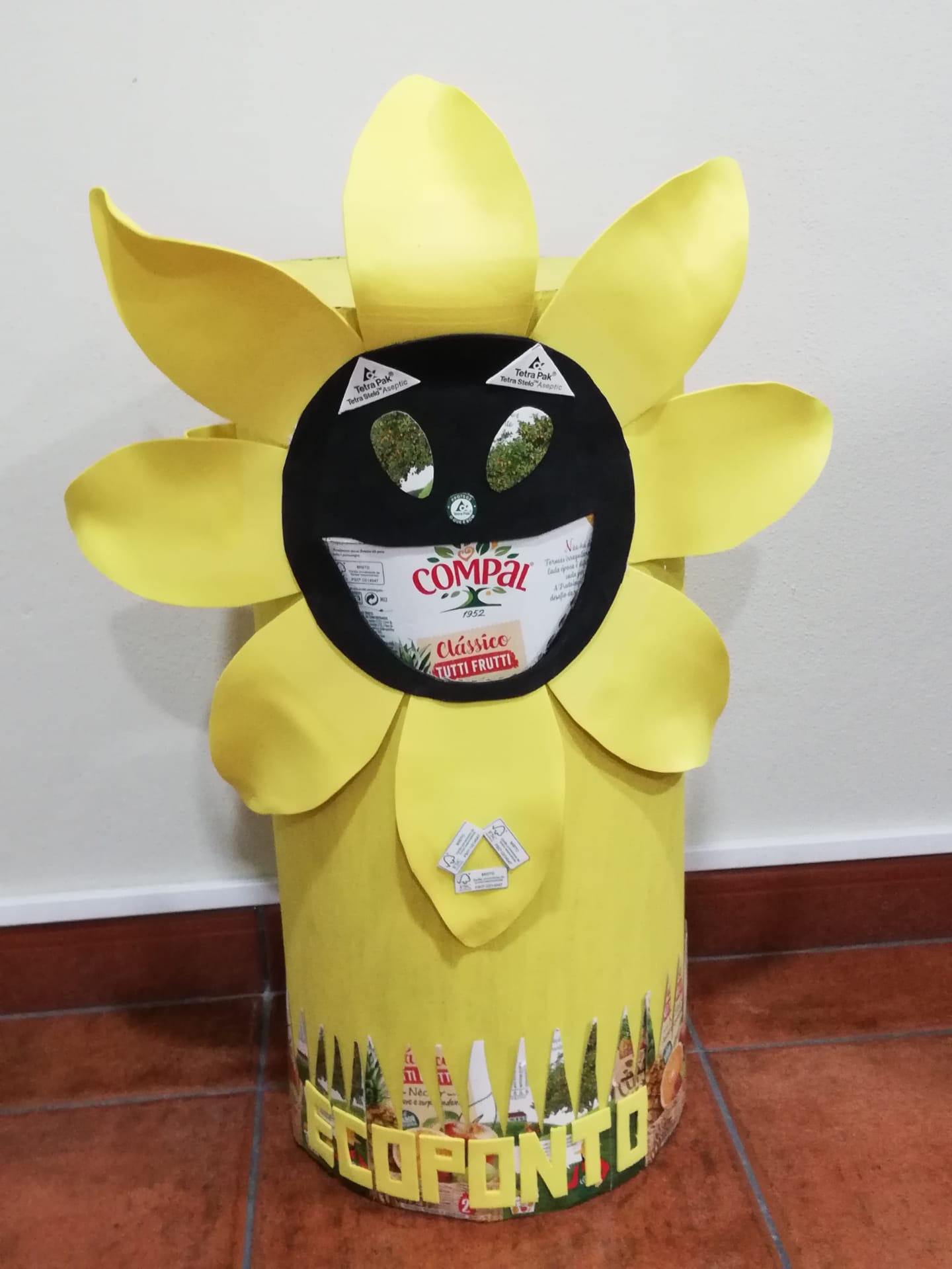 Foi discutida a forma que o mesmo deveria assumir, optando-se por uma caixa de cartão com a forma de um cilindro. Seguiu-se a recolha, pelos alunos, de embalagens Tetra Pak da Compal, que, posteriormente, foram lavadas.