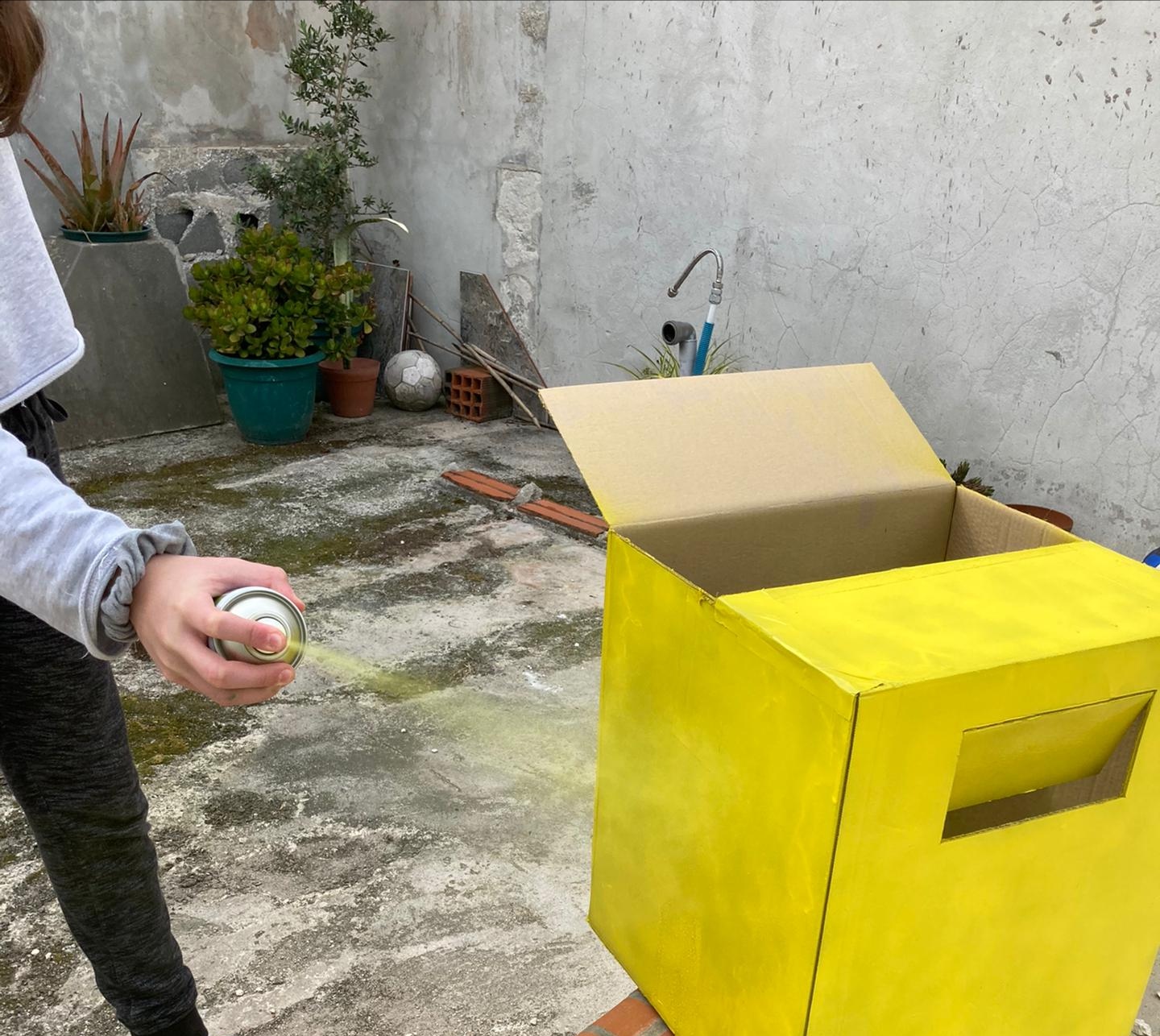 Foto_1: Pintura do caixote com tinta de spray;