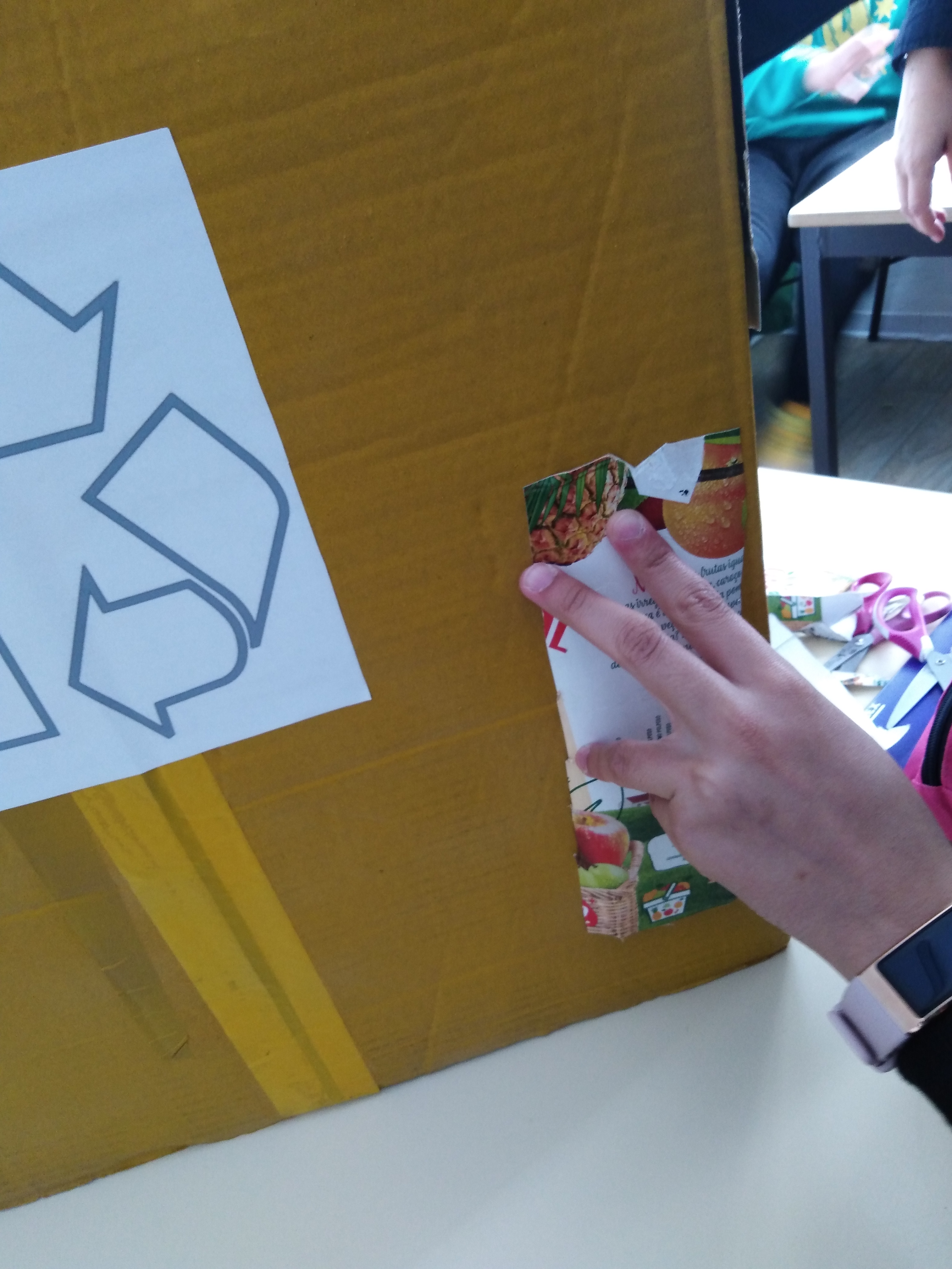 Foto_1: Recorte e colagem de partes de embalagens no ecoponto;