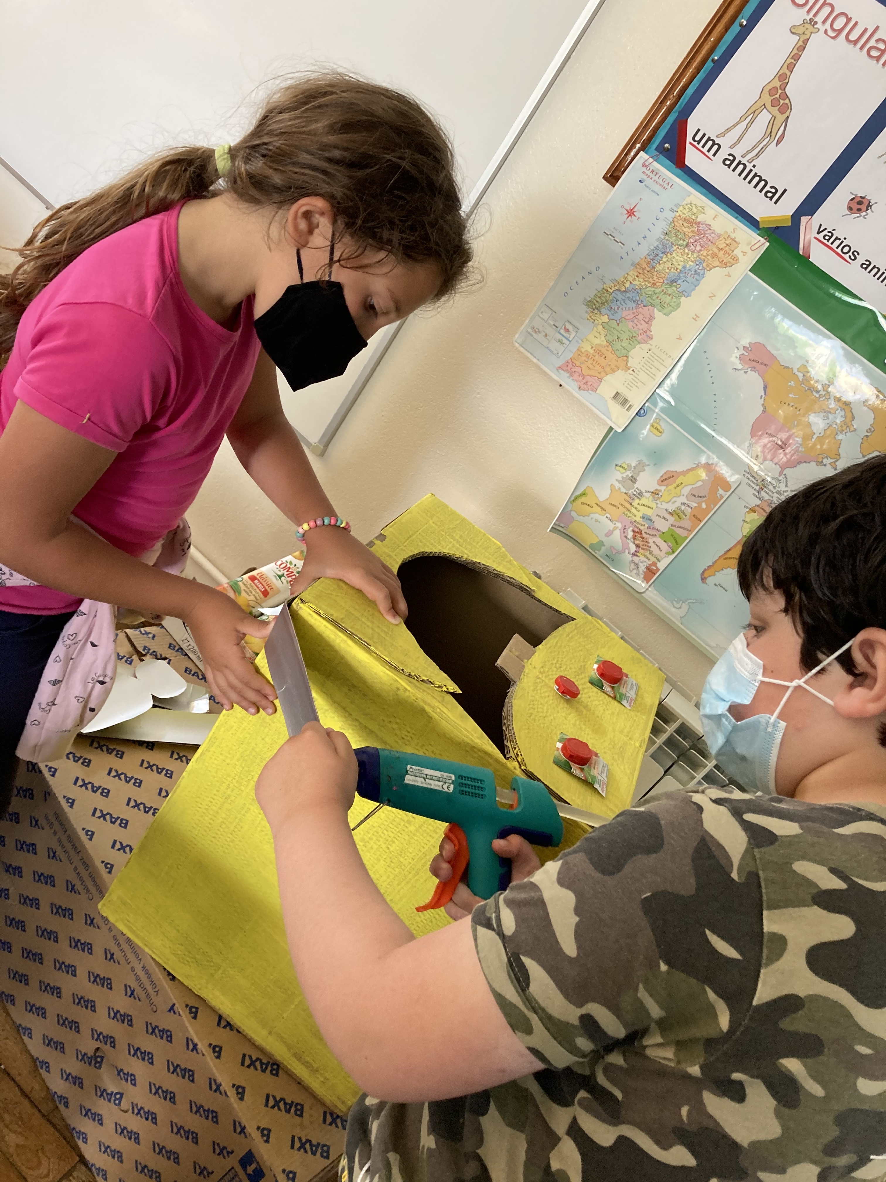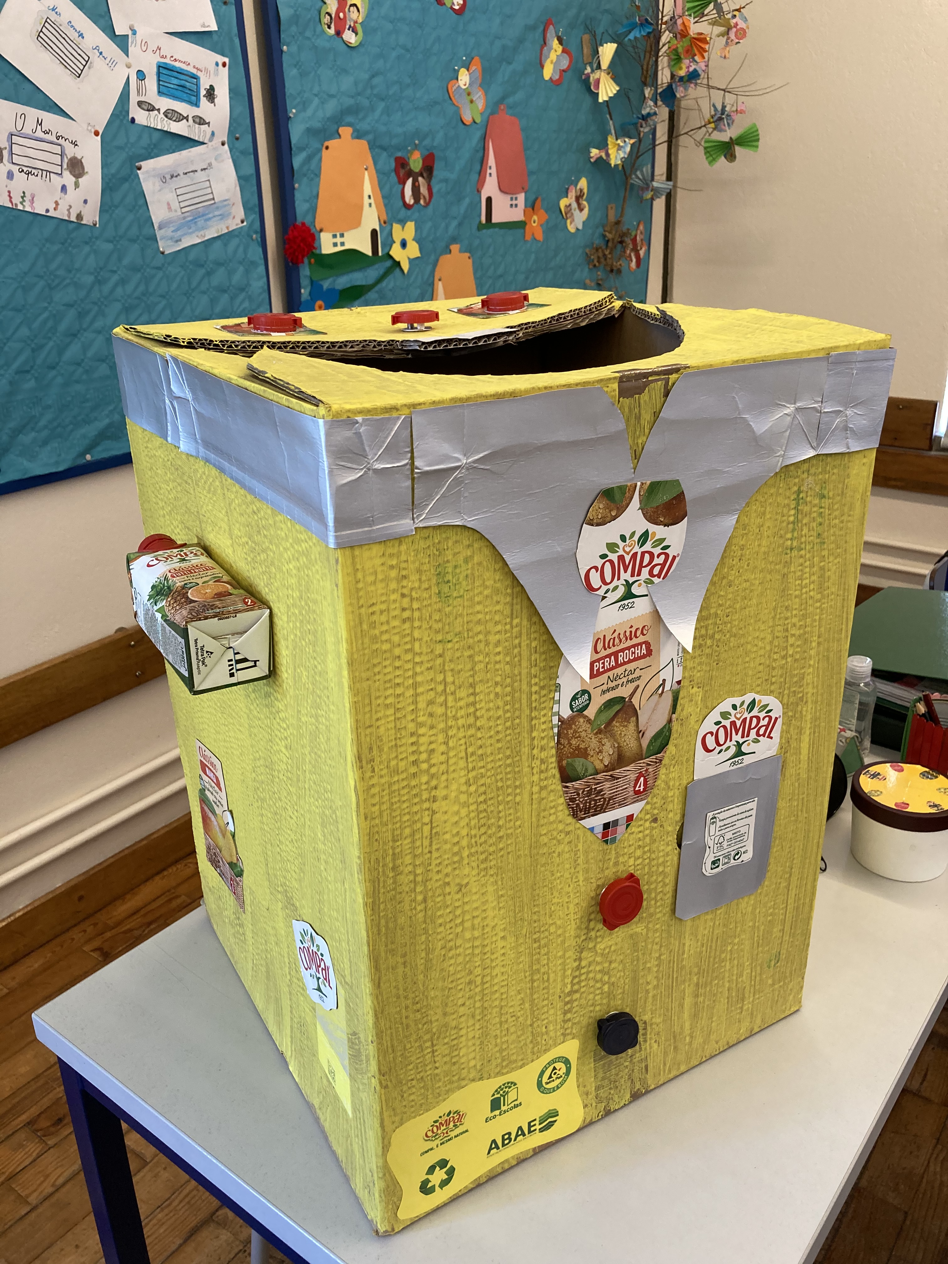 Os alunos tiveram conhecimento do trabalho a executar e seu objetivo. Juntaram-se os materiais trazidos de casa para a construção do Eco-Ponto e começaram os preparativos. Abriram-se as embalagens do Compal e foi dada forma à vestimenta do EMBALAGENGOLE, enquanto outros foram tratando da pintura do corpo. Por fim procedeu-se à montagem do grande e divertido EMBALAGENGOLE.