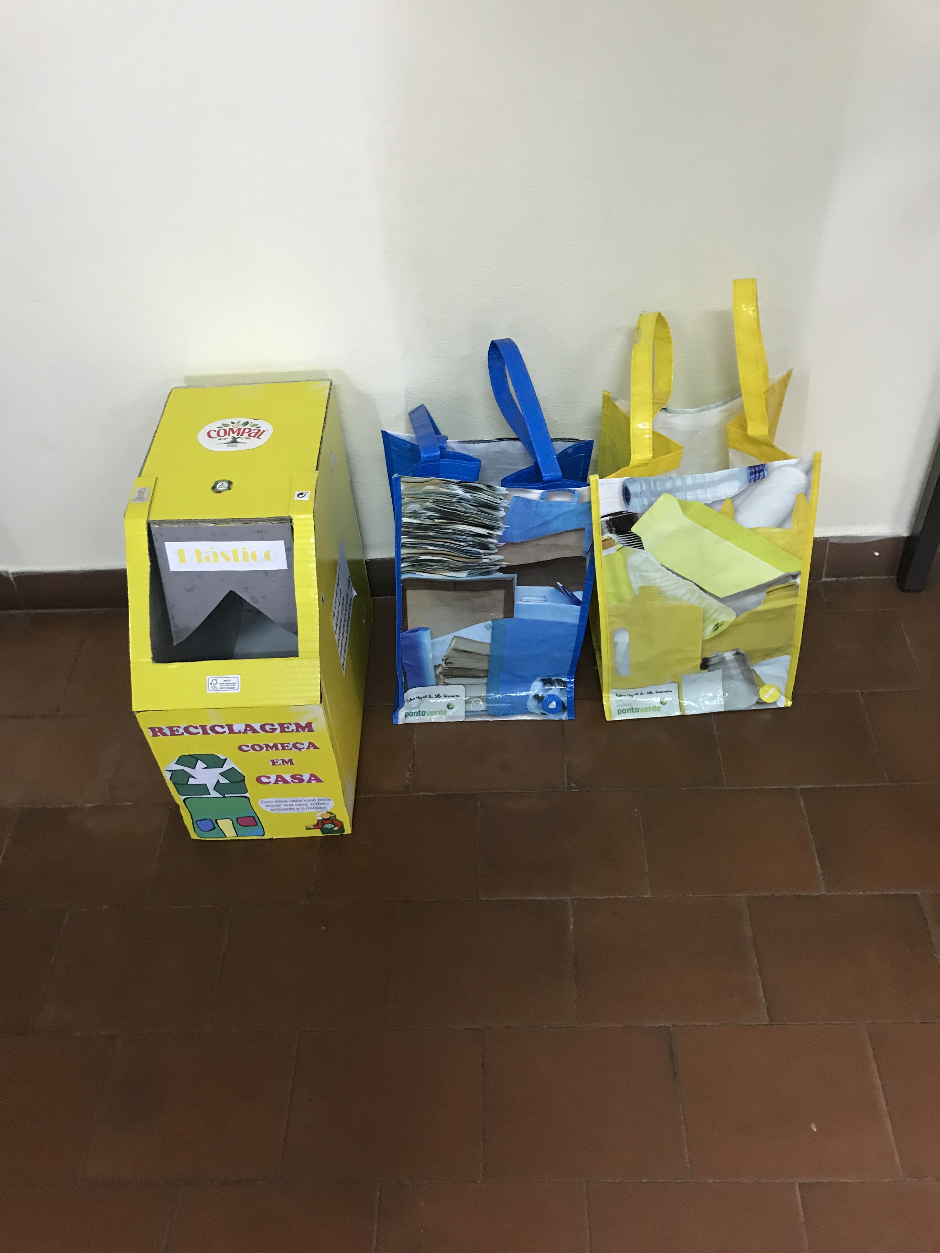 As professoras de Ciências Naturais e Educação Visual, durante o segundo período fizeram uma articulação curricular com o Projeto Eco-Escolas. Todos os alunos da turma do 8º G executaram a planificação e a construção de um Ecoponto Amarelo. Esta articulação a nível de Ciências Naturais integrou o conteúdo programático “Equilíbrio nos Ecossistemas” e na disciplina de Educação Visual integrou o conteúdo "Planificação de sólidos geométricos (Reconhecimento da diferença entre polígono e poliedro - Descrição dos elementos de construção de poliedros: faces, arestas e vértices". Toda a fase de planificação e construção dos ecopontos amarelos foi executada pelos alunos com a ajuda dos E. Educação durante o E@D. Este ecoponto foi construído reutilizando cartão, colado com cola e fita cola e pintados com tinta amarela de spray. Na disciplina de Educação visual foi avaliada toda a planificação do Ecoponto e na disciplina de Ciências Naturais, avaliou-se a criatividade na construção da frase que apela à reciclagem e a criatividade na construção do Ecoponto como um todo.