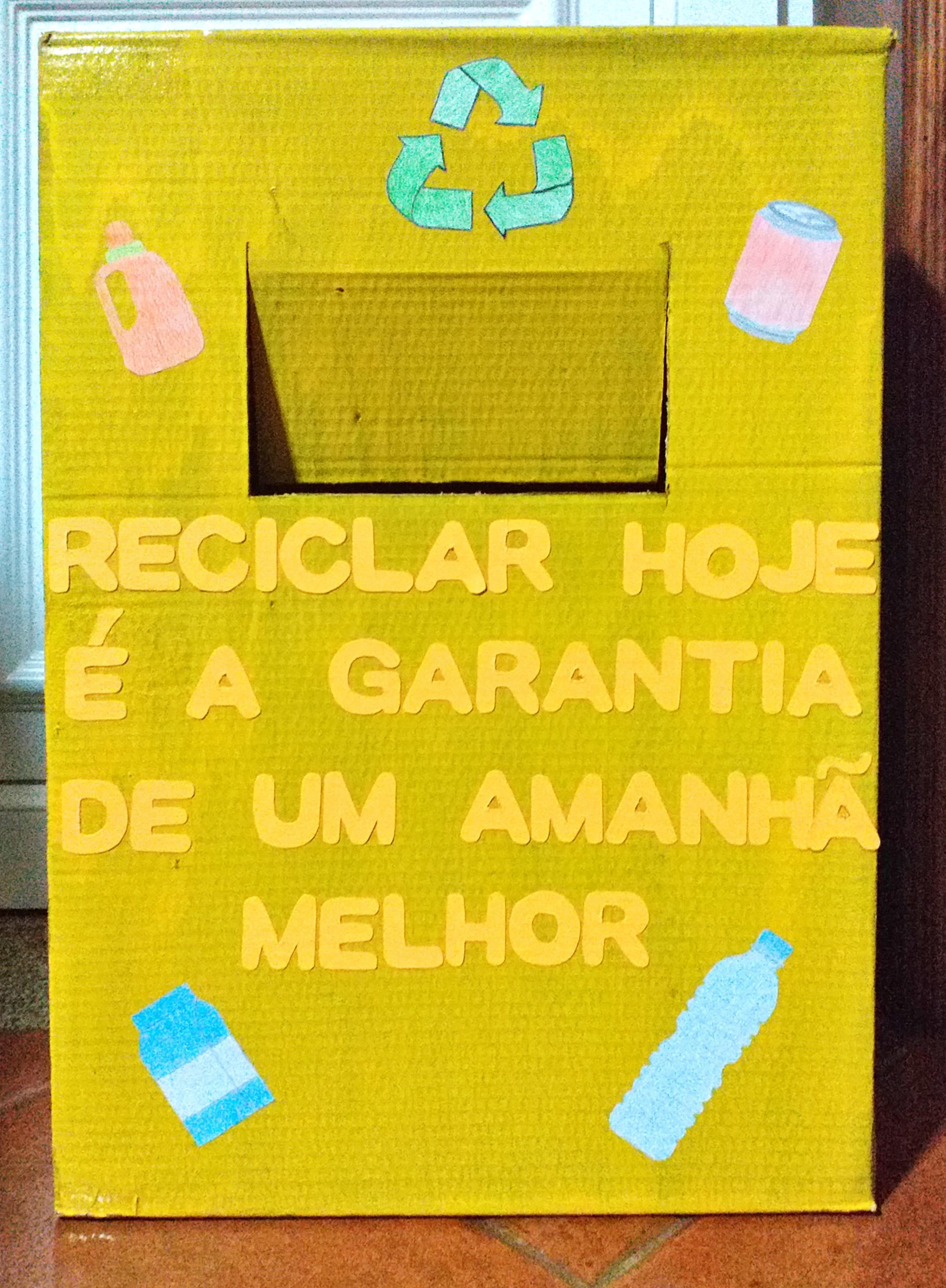Foi solicitado aos alunos da turma A, do 8º ano que partindo do desafio proposto pela Projeto Eco-Escolas, construíssem o seu ecoponto amarelo.