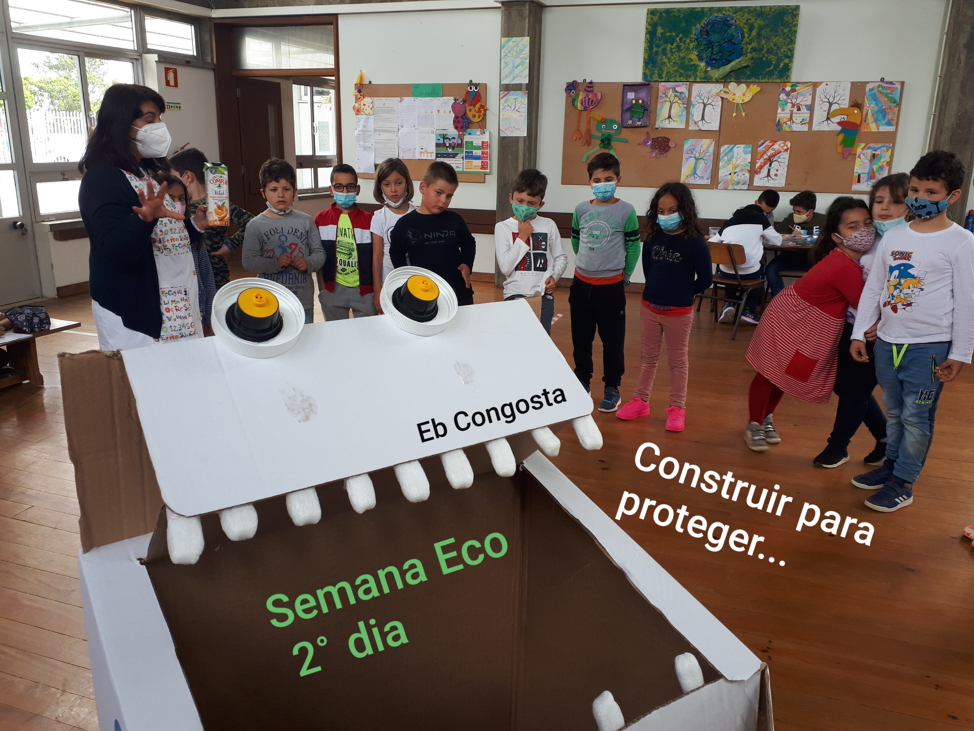 O nosso Ecoponto Amarelo foi construído com a participação de todos os alunos da nossa escola, ao longo de três fases: diálogo sobre a separação correta dos resíduos e planificação da nossa construção, recolha de materiais e construção do Ecoponto. No final, fizemos a avaliação da atividade. O Ecoponto está no salão polivalente da nossa escola, pronto a ser utilizado por todos. O envolvimento das famílias foi importante na 2ª fase. Relembramos a importância da correta separação e aprendemos o significado do selo FSC e a pertinência de adquirirmos produtos com esta sinalética. Os alunos adoraram o produto final: "Ecomonstro amarelo".