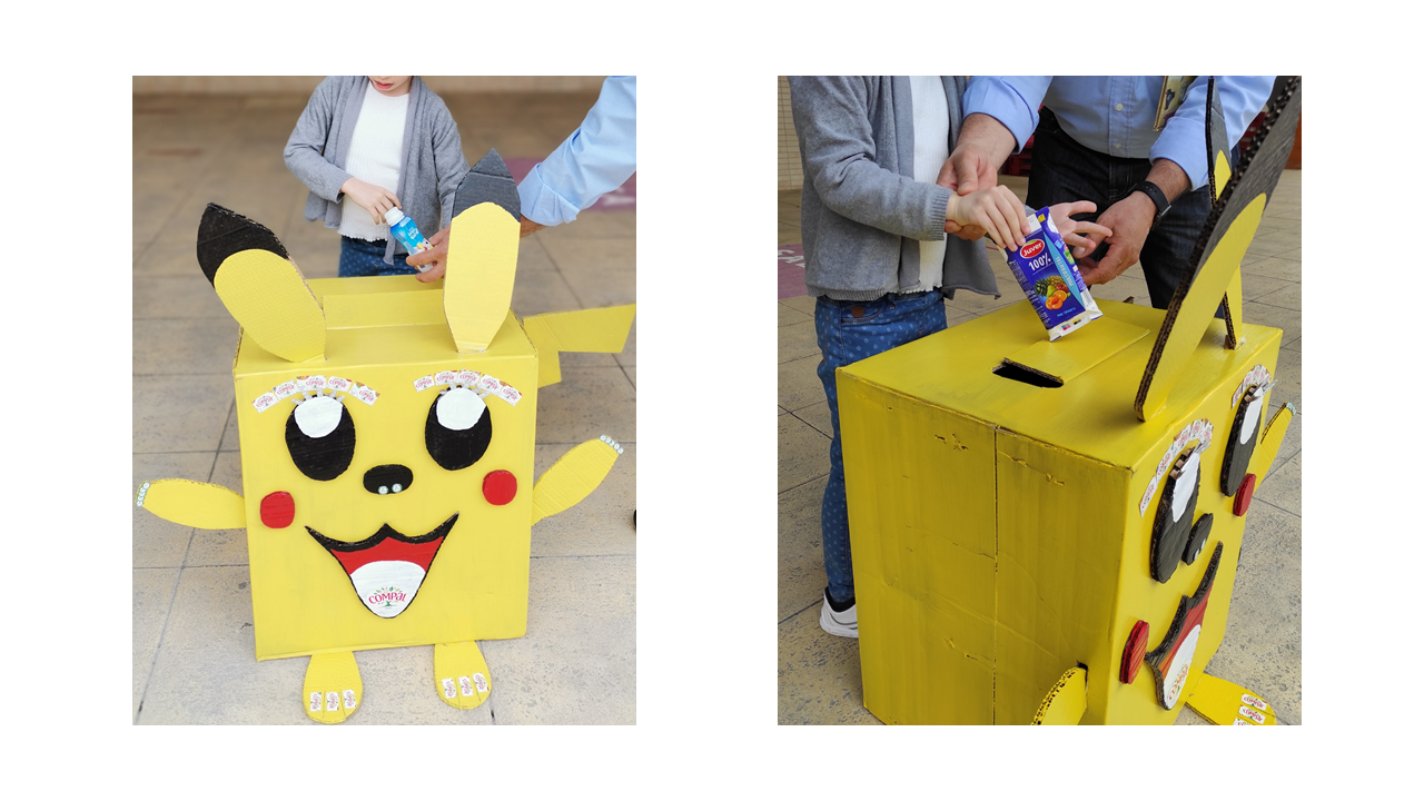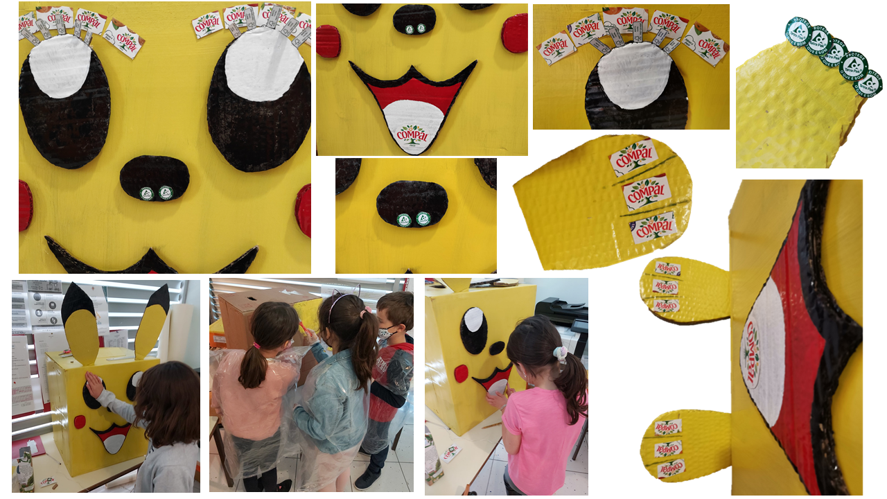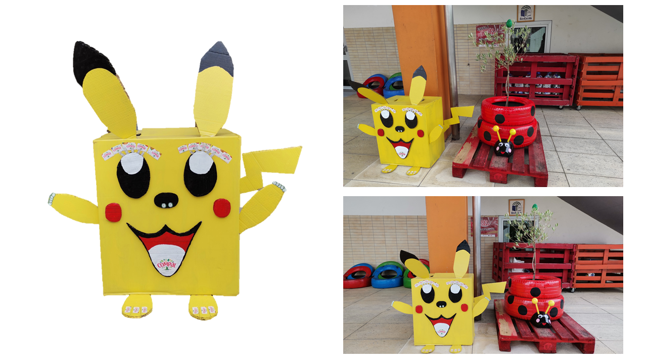 Em diálogo com os alunos, surgiu a ideia de construir um ecoponto amarelo com uma figura de que aqueles mais gostassem, Promoveu-se uma chuva de ideias e foi consensual a escolha: o Pikachu.