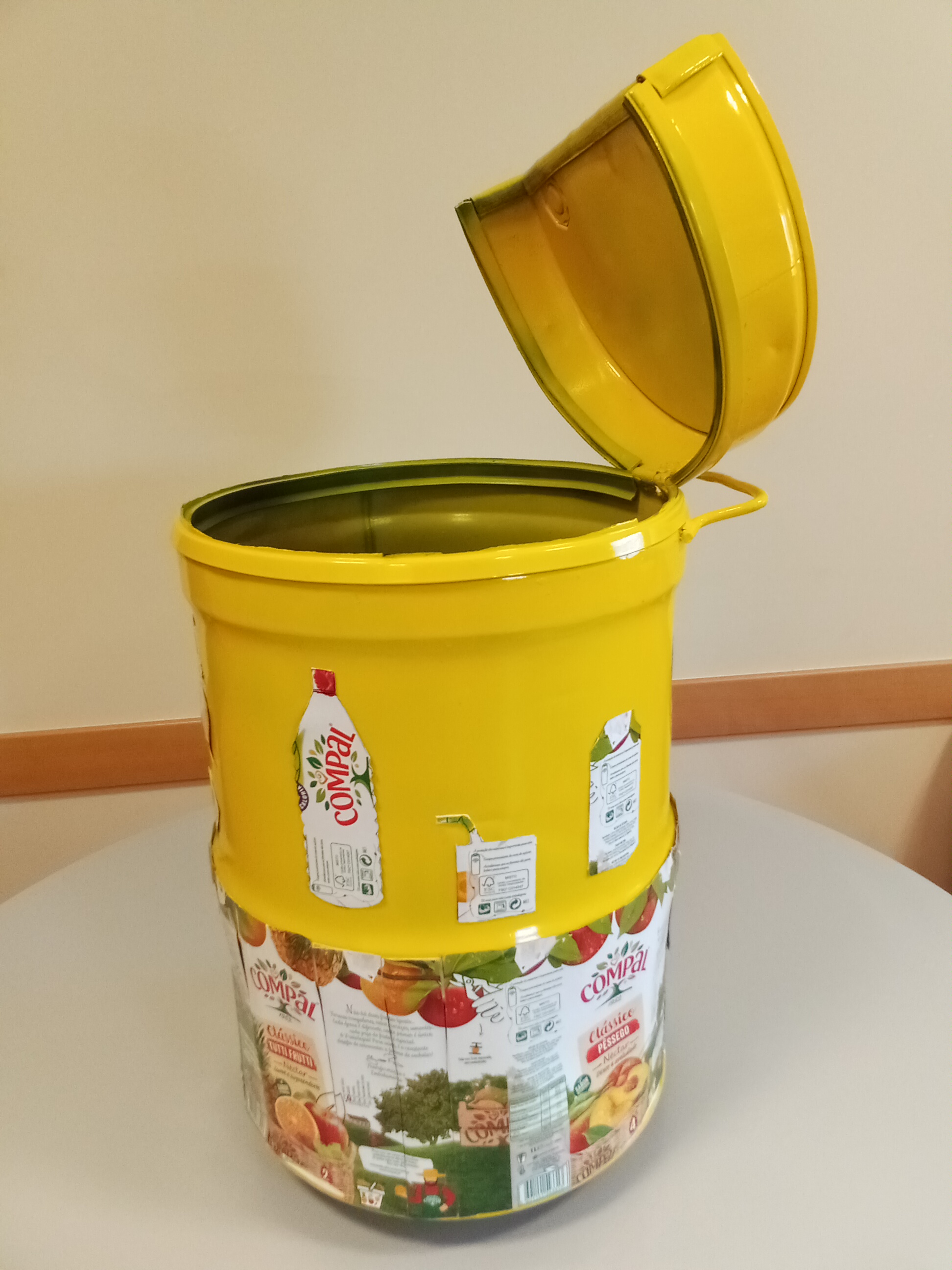 O segundo ecoponto foi construído a partir de bidão de óleo para os camiões que foi cortado horizontalmente na parte superior de modo a que possa levantar a tampa retirar os resíduos ali colocados. A tampa tem uma abertura para permitir o depósito das embalagens sem necessidade de levantar a tampa. Para proteção contra eventuais cortes, foi reaproveitado um friso de borracha de uma porta de um automóvel.