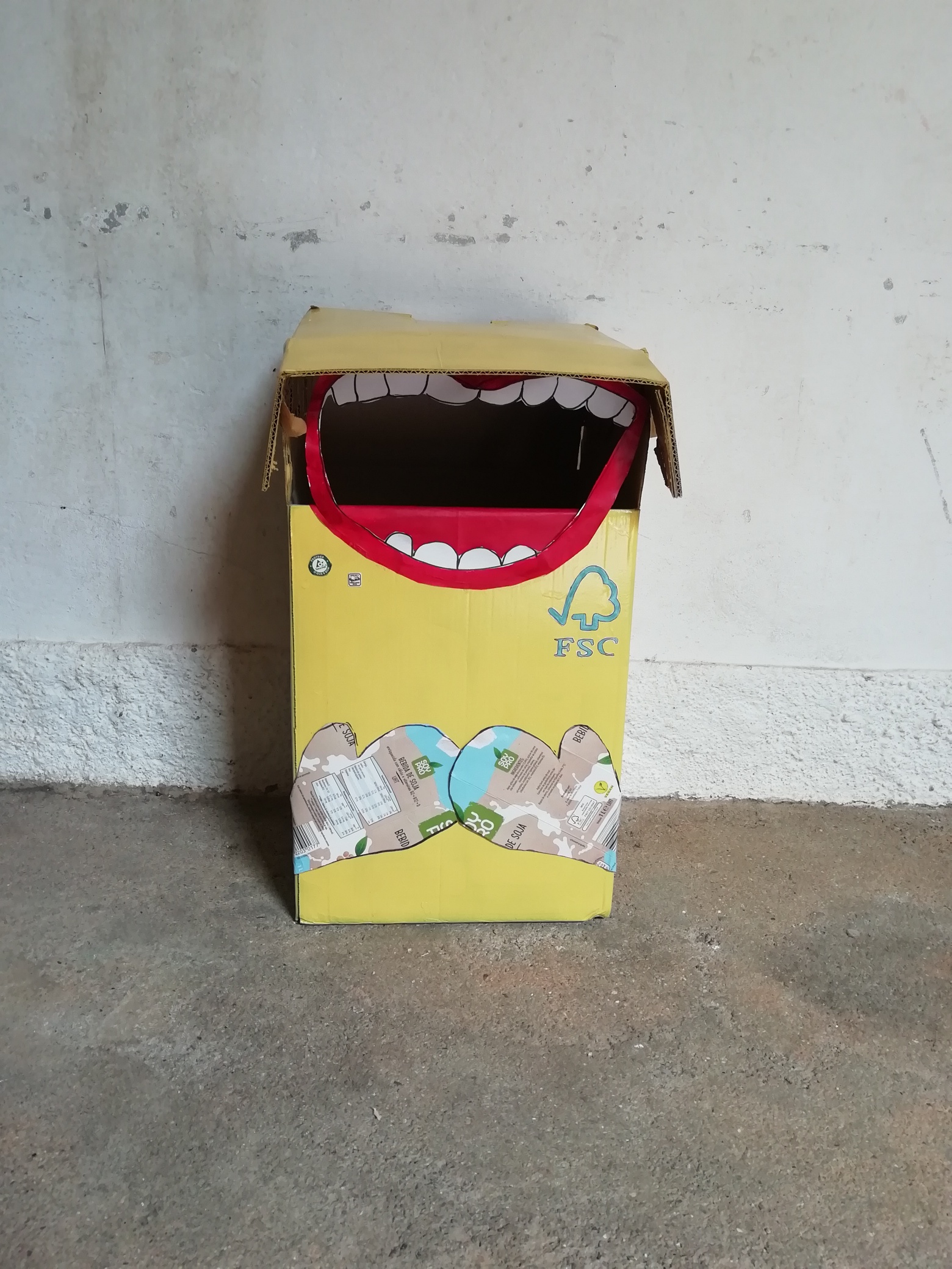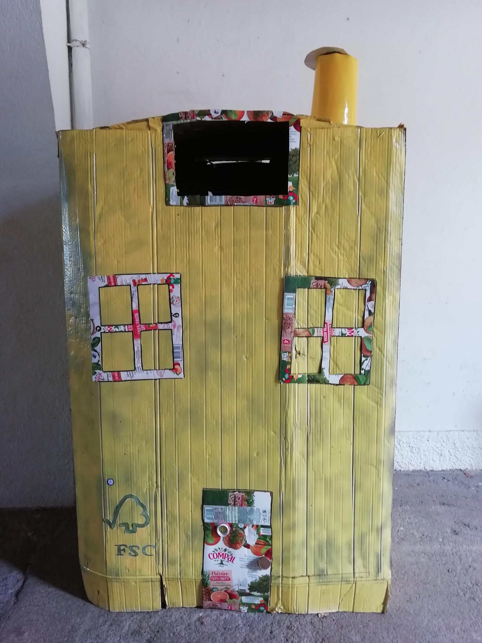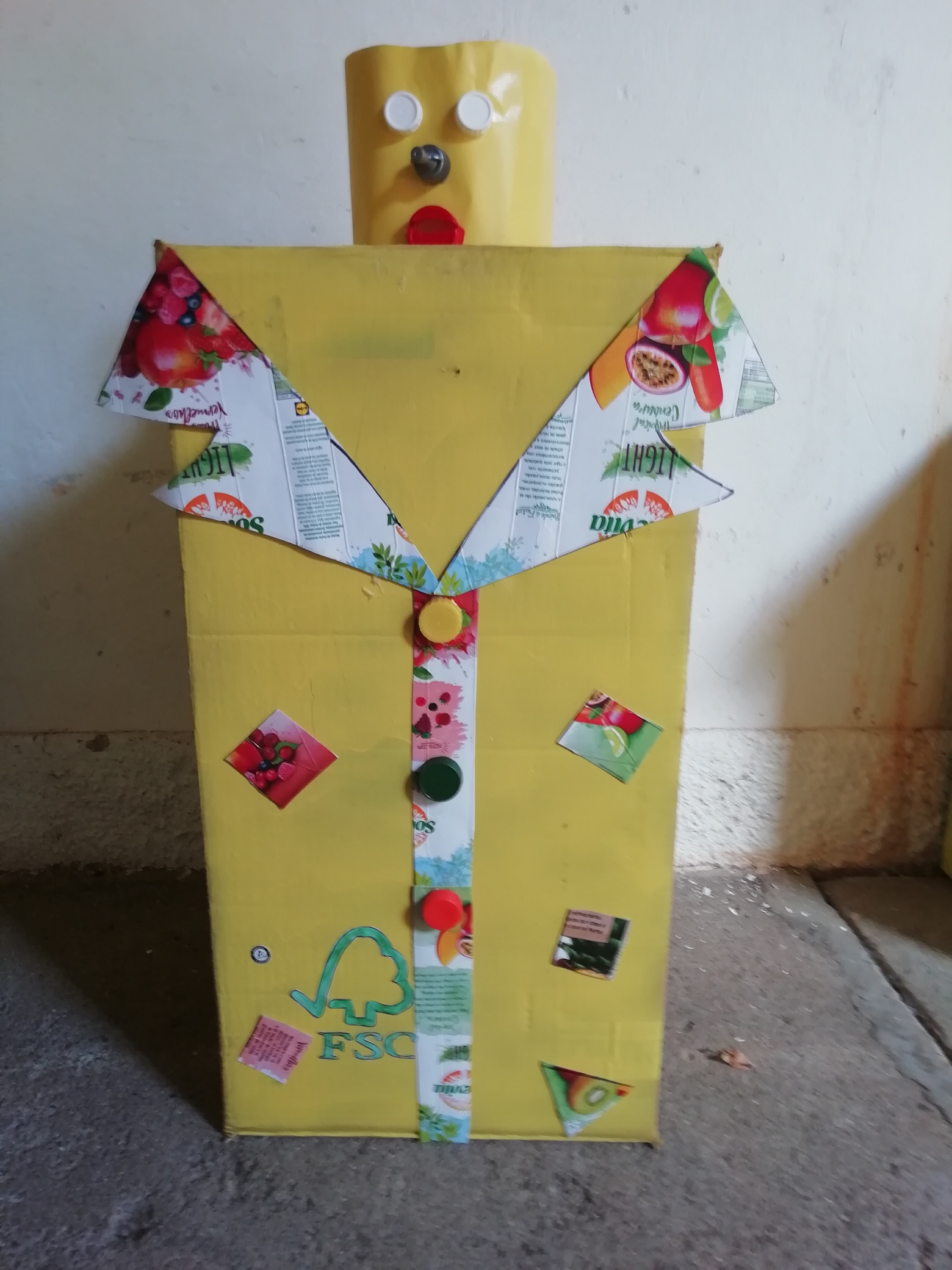 Dividiu-se a totalidade dos alunos das duas turmas do 1.º ciclo em três grupos de dez elementos, ficando cada grupo responsável por trazer de casa caixotes e embalagens tetra pack vazias, a fim de construírem um eco-ponto amarelo. Uma encarregada de educação, enviou as tintas amarelas.