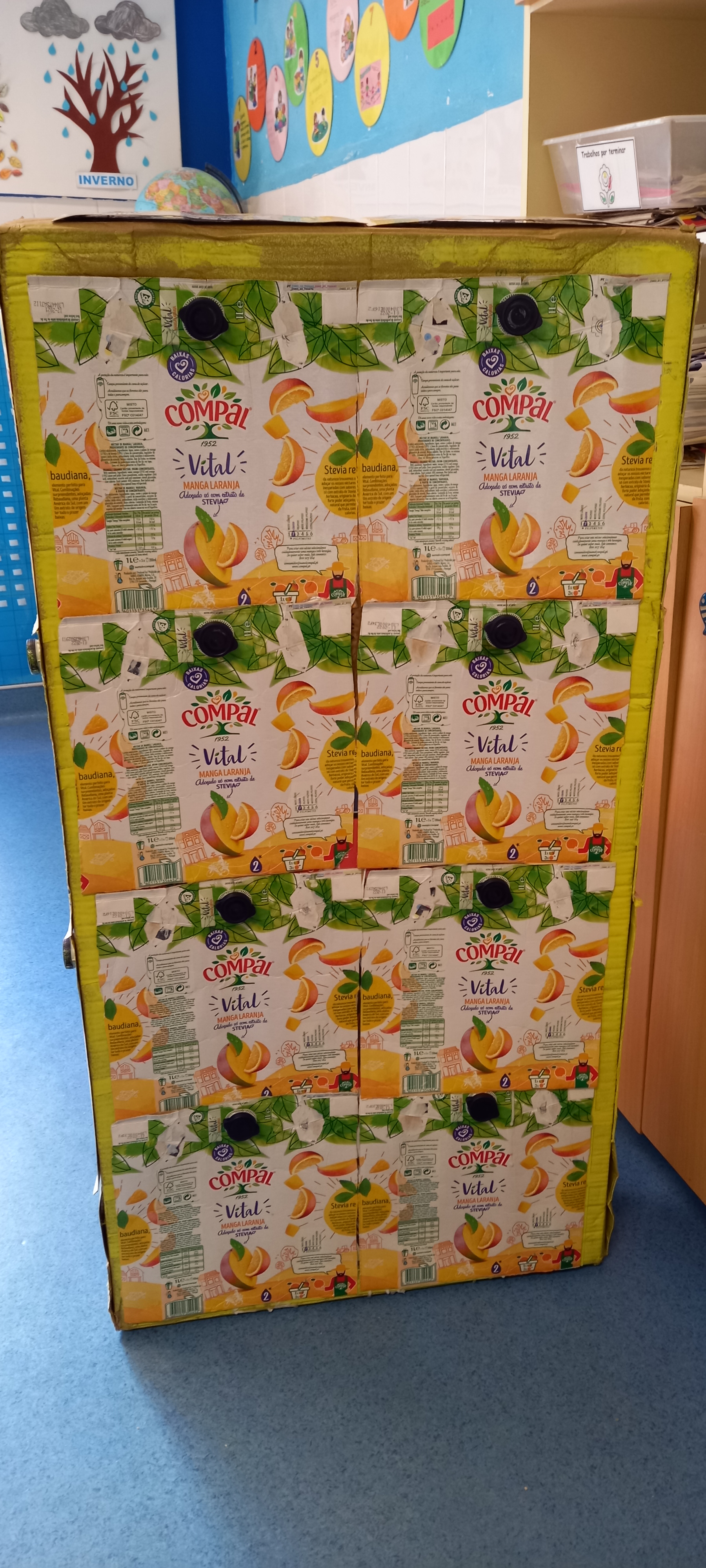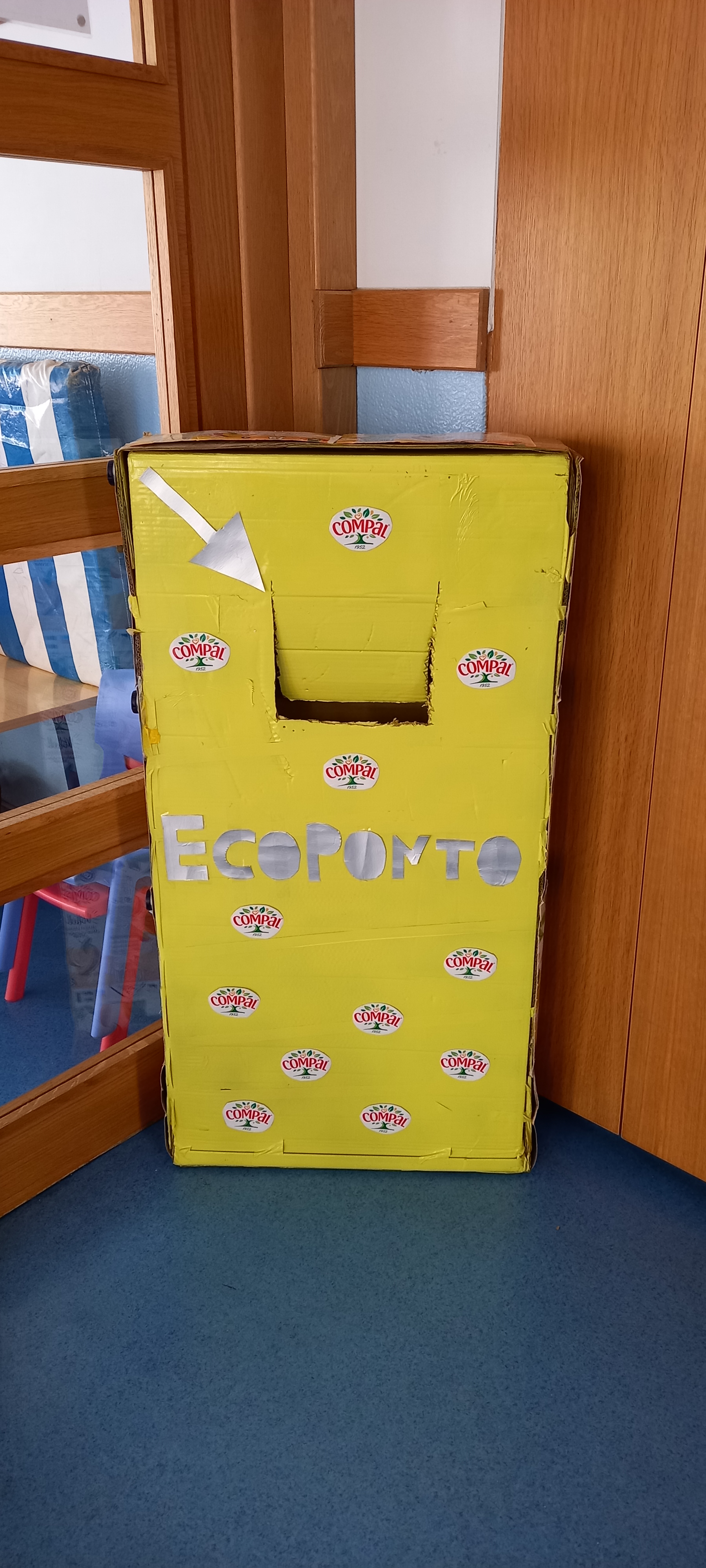 Quando a escola reabriu trouxeram o ecoponto para a escola e todos juntos escolhemos uma bonita frase para colar no nosso ecoponto