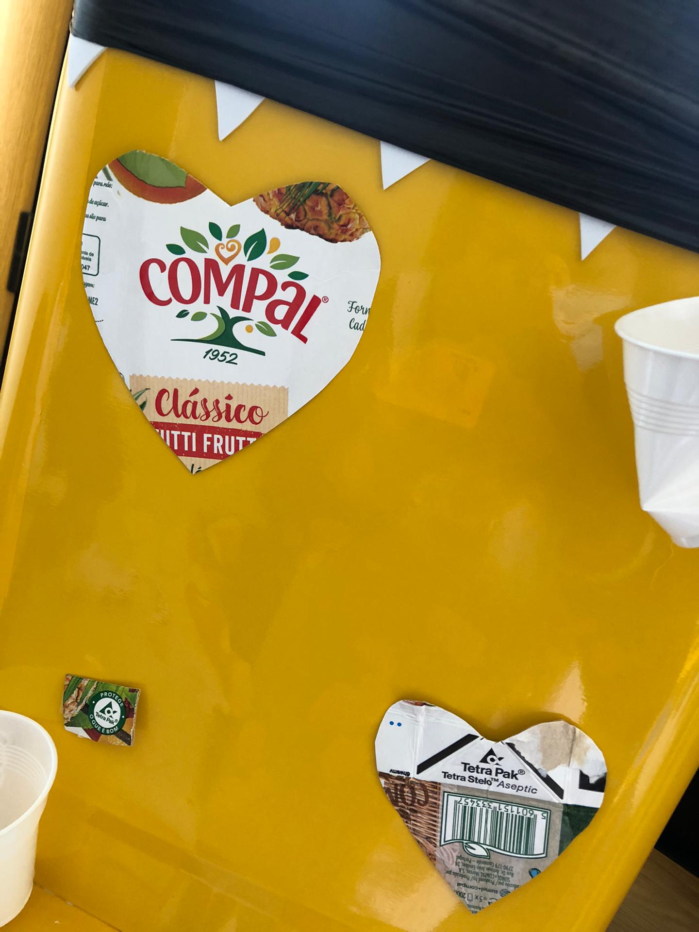 Com esta atividade, o nosso objetivo foi utilizar o mesmo para a reciclagem dos copos e colheres de café na sala de convívio dos funcionários da instituição.