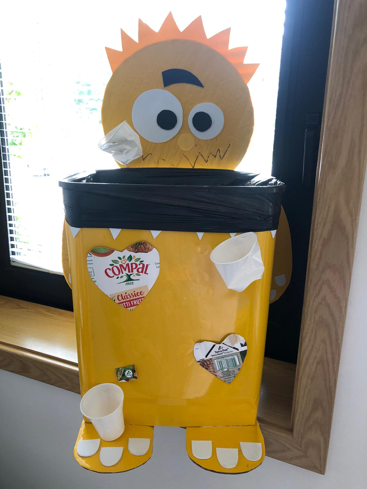 Para a construção do ecoponto amarelo, juntamos as crianças e lemos a proposta de atividade e quais os materiais necessários para a sua construção.