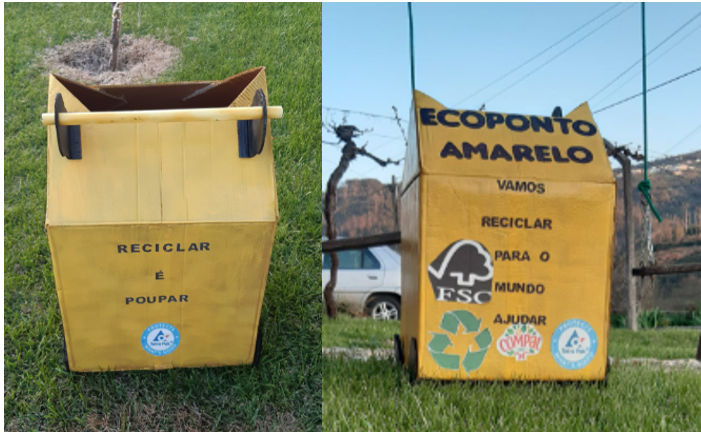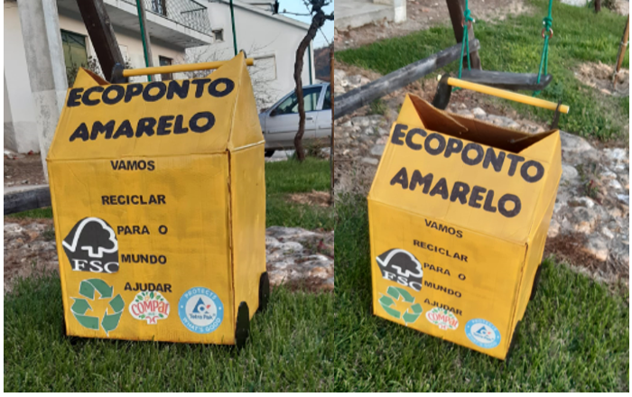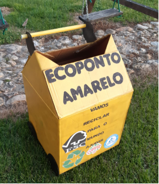 Lançado o desafio em confinamento, os alunos abraçaram-no, criando ecopontos na cor amarela, apelando e consciencializando a comunidade educativa para a importância da separação de resíduos, neste caso as embalagens de plástico, metal e tetrapak.