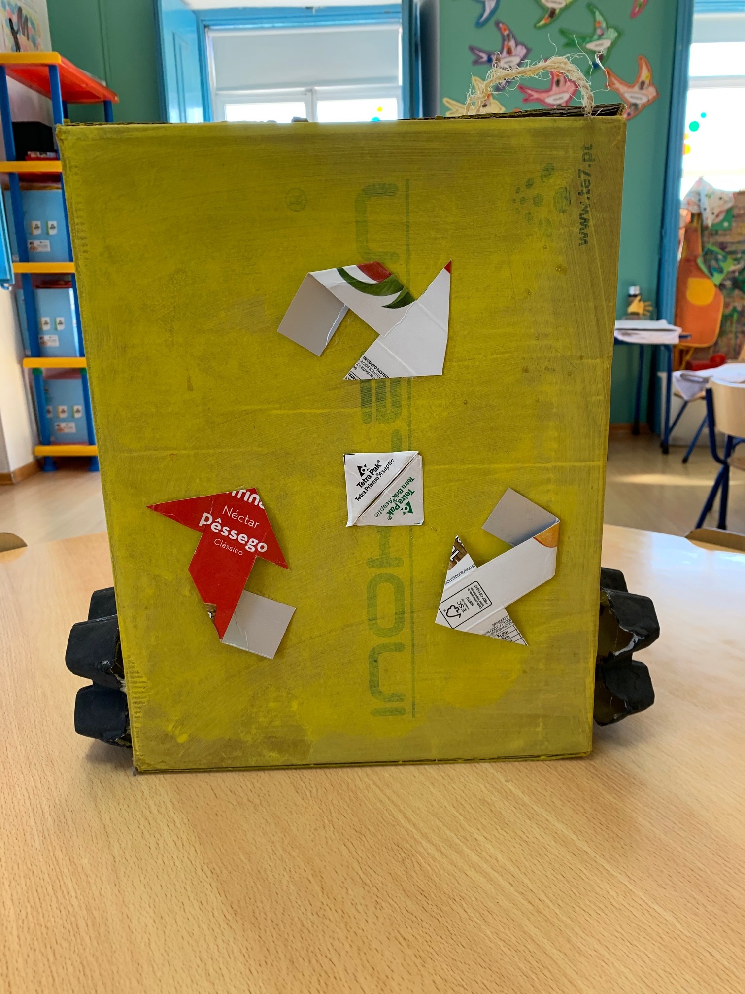 As crianças de 3 anos da sala Bordalo Pinheiro fizeram o ecoponto amarelo.