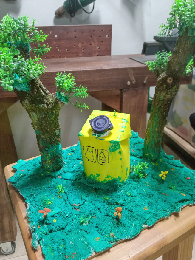 Para a Terra salvar, as embalagens devo separar e no ecoponto amarelo devo colocar.
