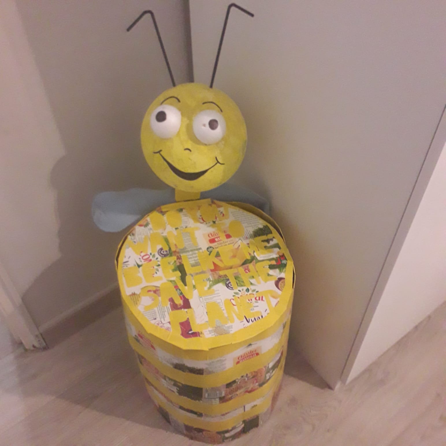 O nosso Buble Bee, carinhosamente apelidado pelas crianças (turma dos 5 Anos - Stage 1), surge no âmbito deste projeto e vem complementar os nosso eco-pontos de sala, onde já existia o papelão e o vidrão (que são pequenos monstrinhos).
