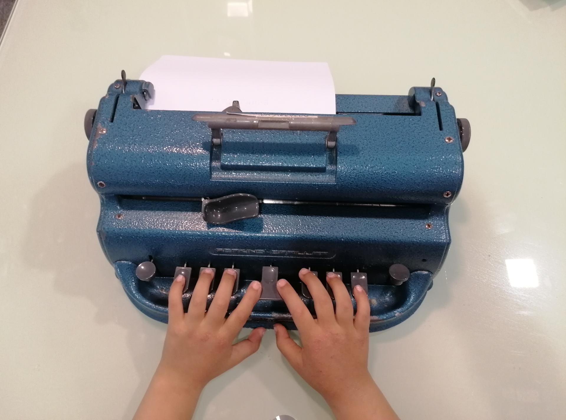10.º Escrever na máquina de Braille “Ecoponto amarelo”.