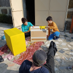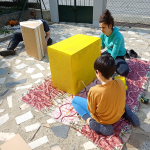 O processo de construção do ecoponto amarelo de um aluno com a sua família. Desde a utilização de uma caixa de cartão, às embalagens da Compal que serviram de decoração, ao engenho e empenho colocado por todos até ao produto final.