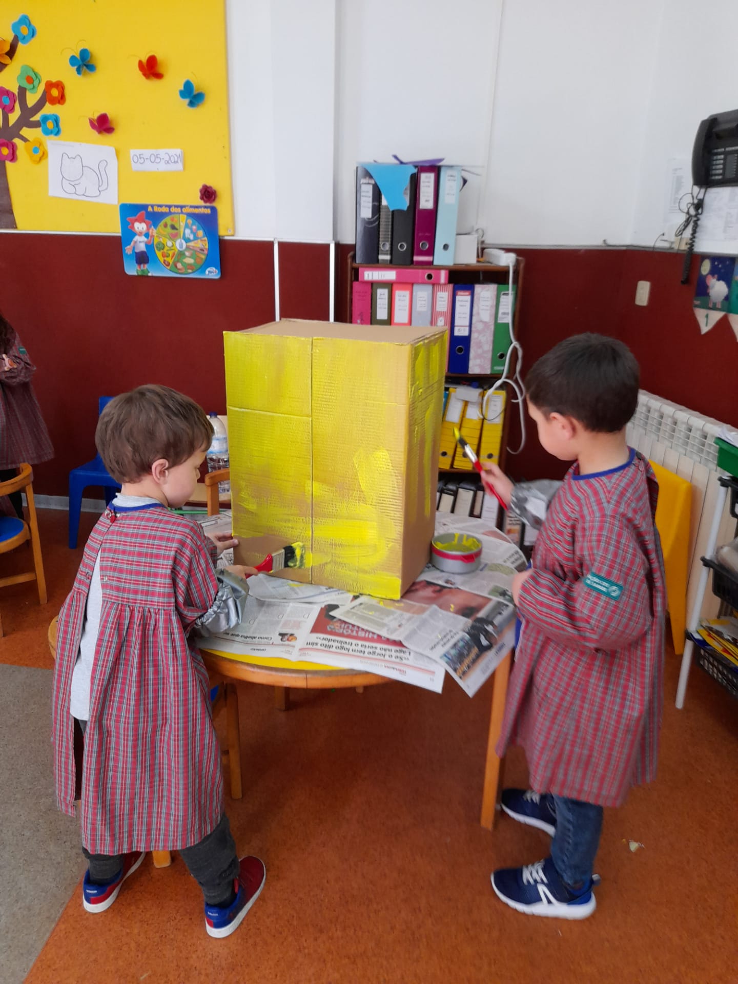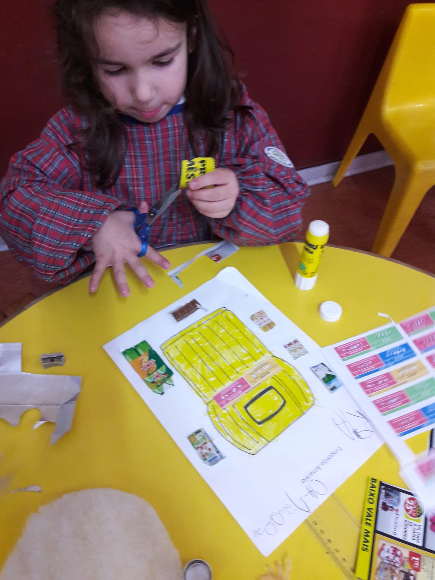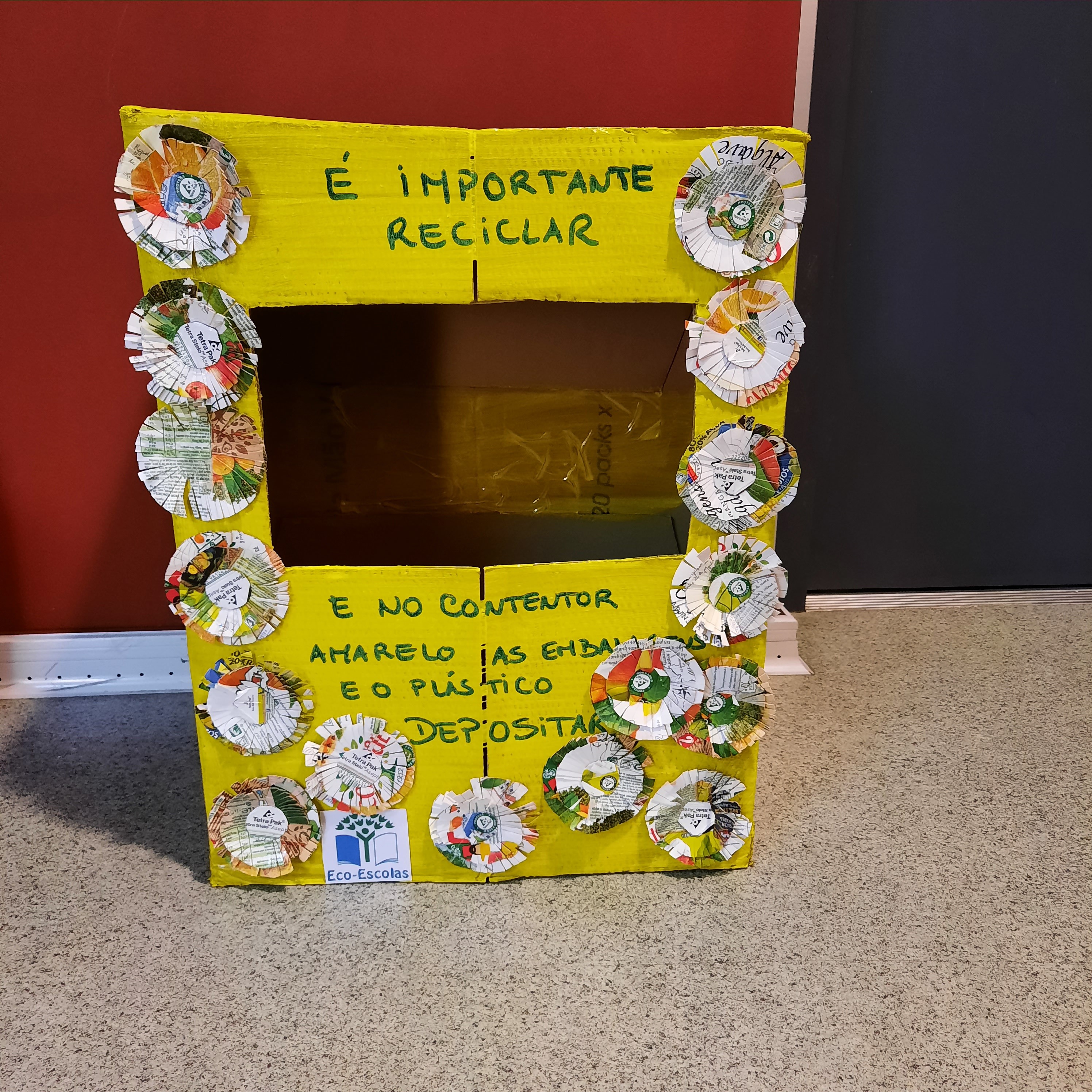 As crianças foram sensibilizadas diariamente para a separação do lixo nas salas de jardim de infância, e existe um trabalho de sala nesse sentido ( foto). Desta forma, sugerimos a criação do eco ponto amarelo, em que todos participaram na sua elaboração. Com as embalagens da Compal, foi decidido realizarem flores e colar na caixa, devidamente pintada de amarelo. Em conjunto, elaboraram a frase para colocar no ecoponto amarelo. Uma atividade que todos acharam divertida!