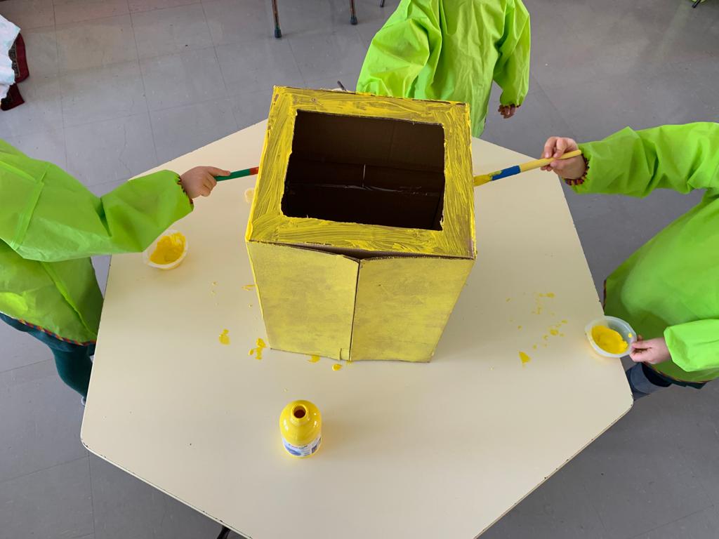 Material utilizado: cartão, colas, tintas, embalagens Tetra Pak