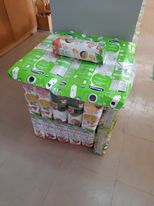 3. Iniciamos a construção, uns seguravam outros passaram a fita cola bem apertada para fazer "as paredes"