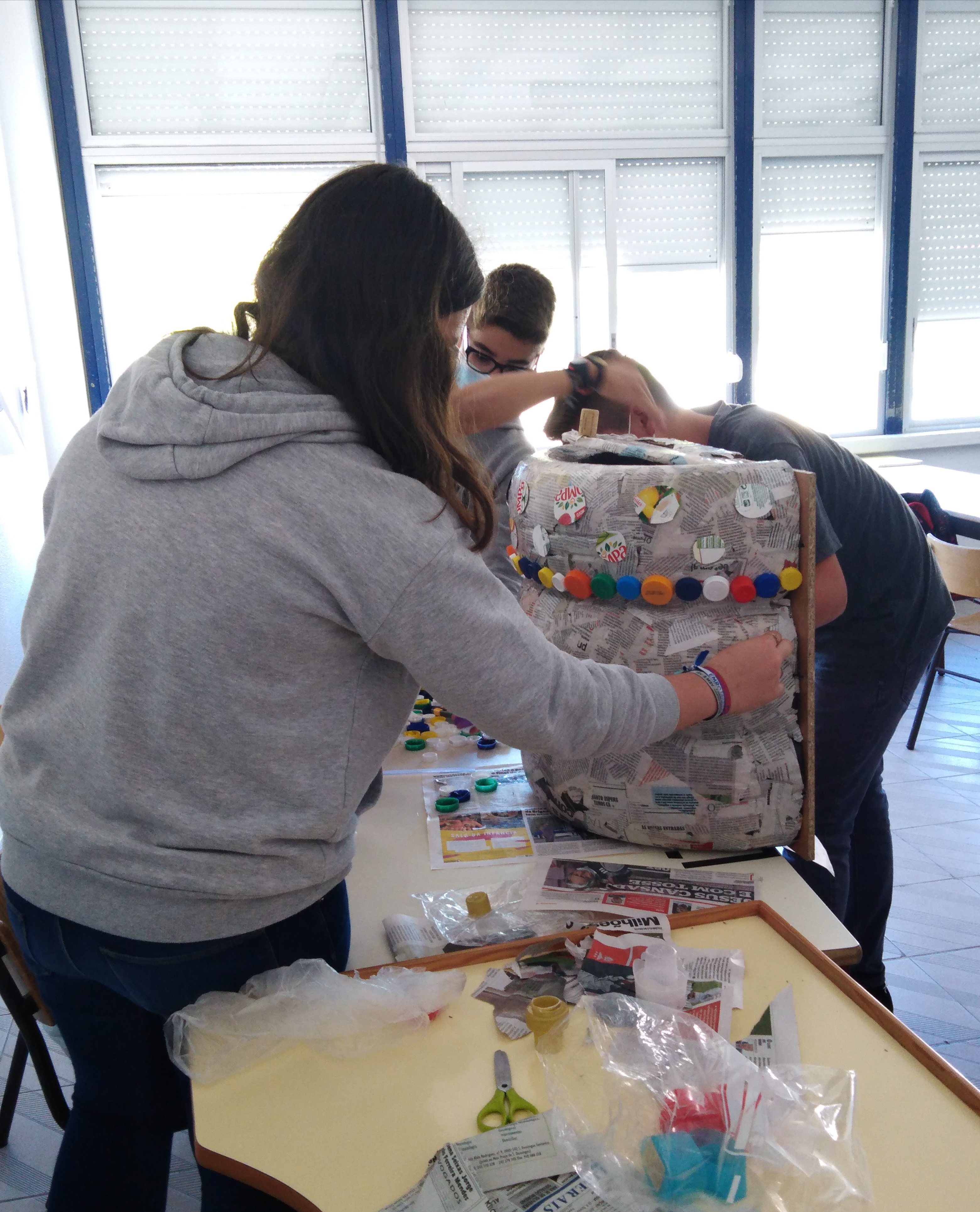 Posteriormente, nas aulas de Cidadania e Desenvolvimento a professora Beatriz Ferreira divulgou, junto dos alunos do sétimo ano – 7.ºB, este concurso apresentando o regulamento do mesmo e deu-se início à construção do Ecoponto. Contaram com ajuda da professora coordenadora do projeto na recolha das embalagens de Tetra Pak. O ecoponto foi construído apenas com materiais recicláveis.