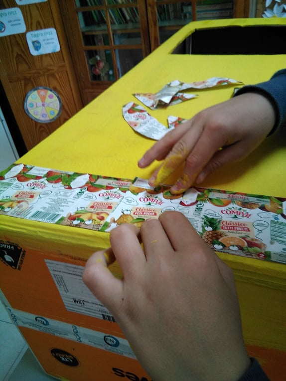 - Recolheram caixas vazias, pacotes de sumo compal e papelão.