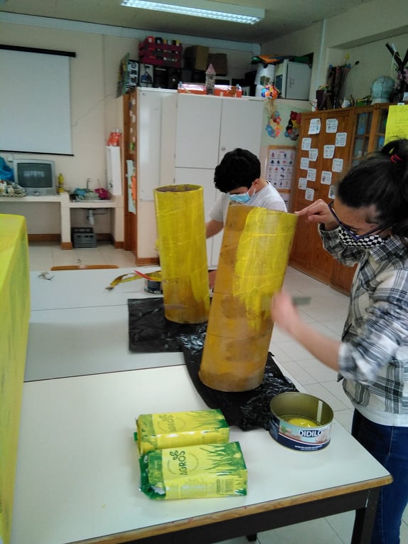 - Construíram os ecopontos utilizando os materiais recolhidos e outros.
