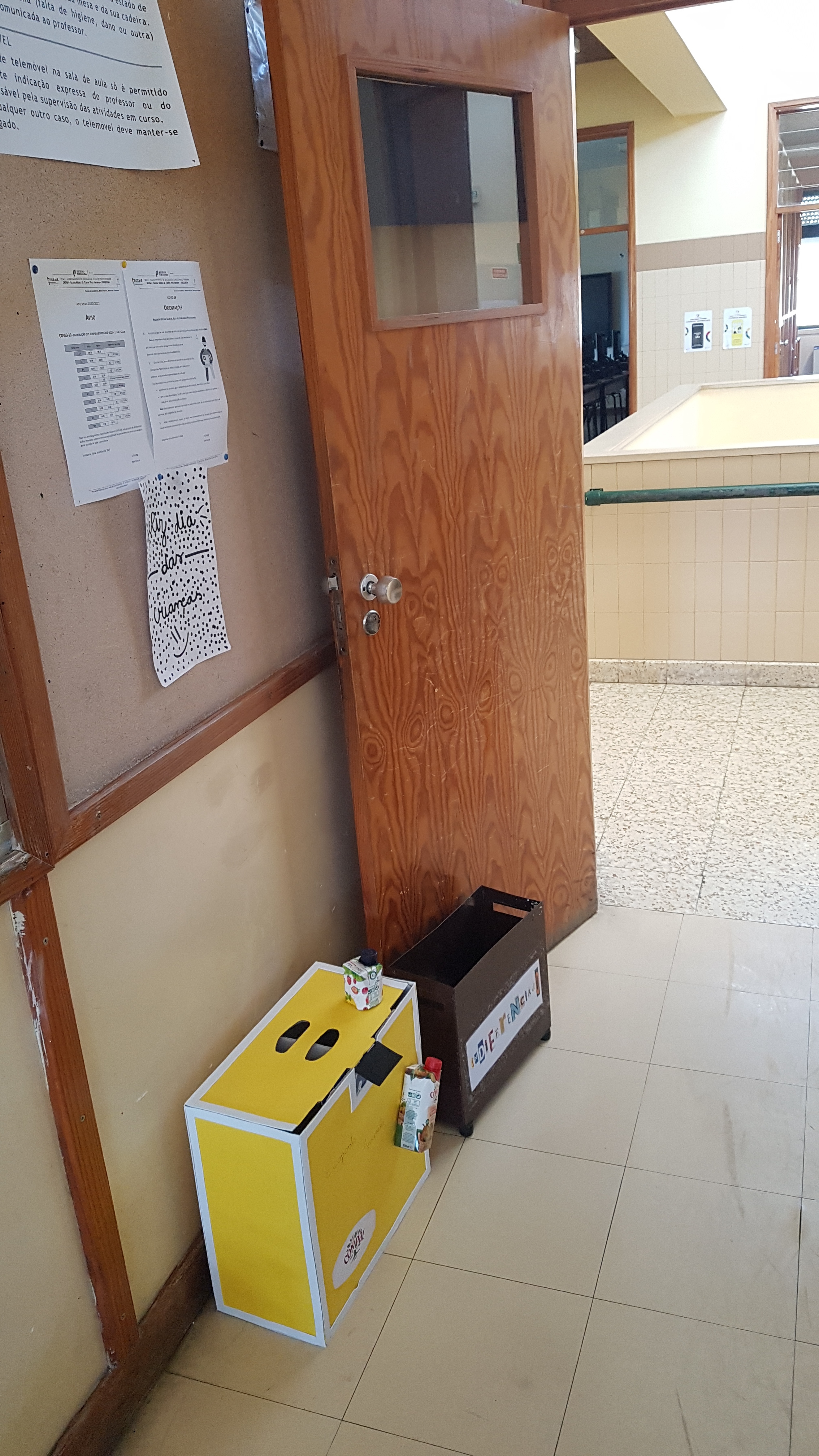 Quando regressamos à escola, a Ariana levou o ecoponto amarelo que foi colocado na sala onde a turma do 8ºE tema a maioria das suas aulas. É utilizado para depositar todas as embalagens, plásticos e metais, que terão uma nova vida.