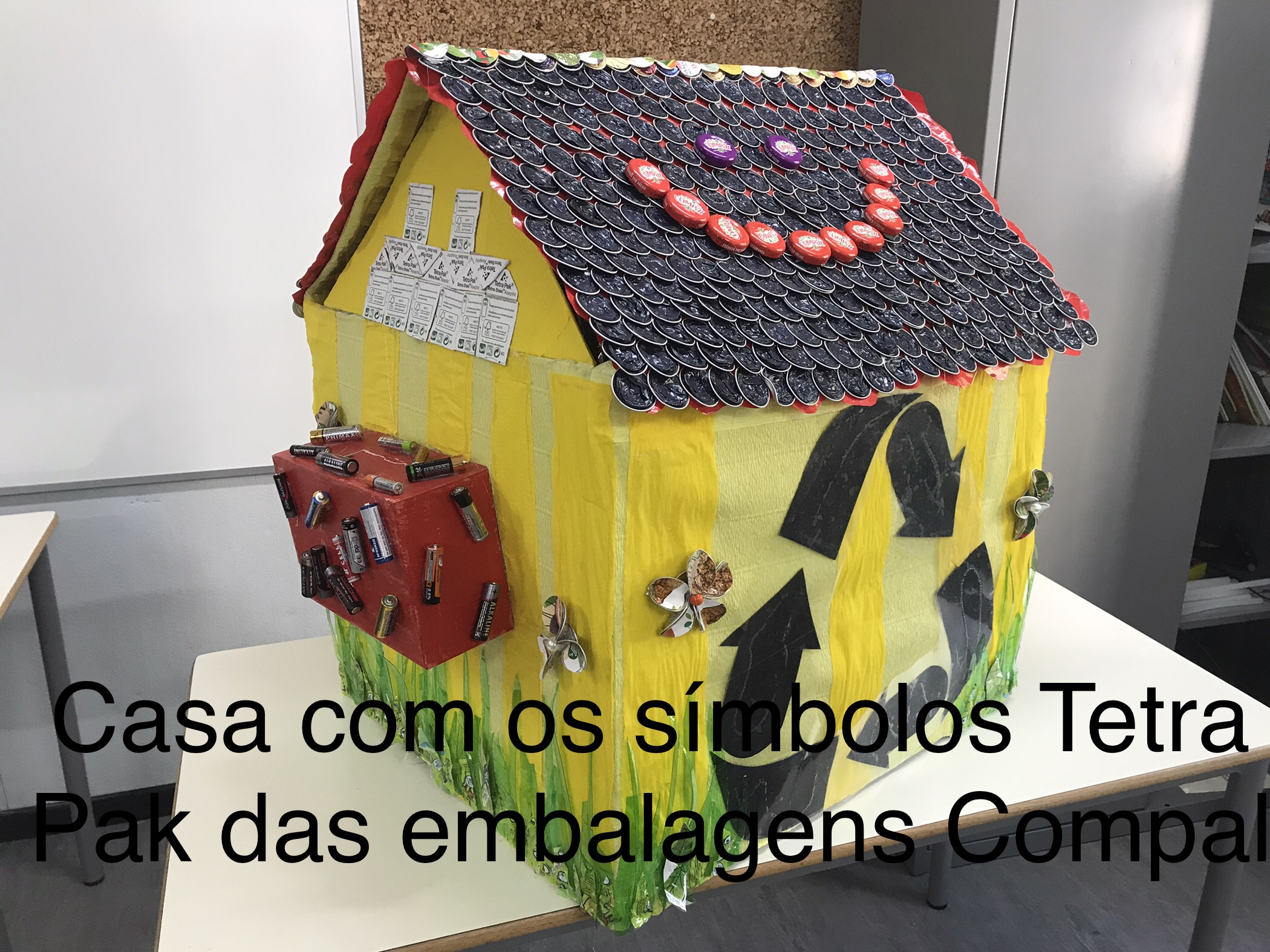 sumo Compal e outros plásticos indiferenciados. As flores foram feitas com tampas de café e