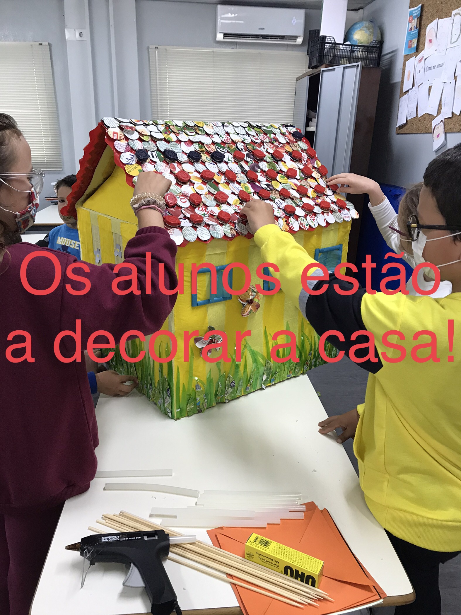 Na construção da Casa Ecoponto Amarelo, a turma teve a colaboração dos Encarregados de
