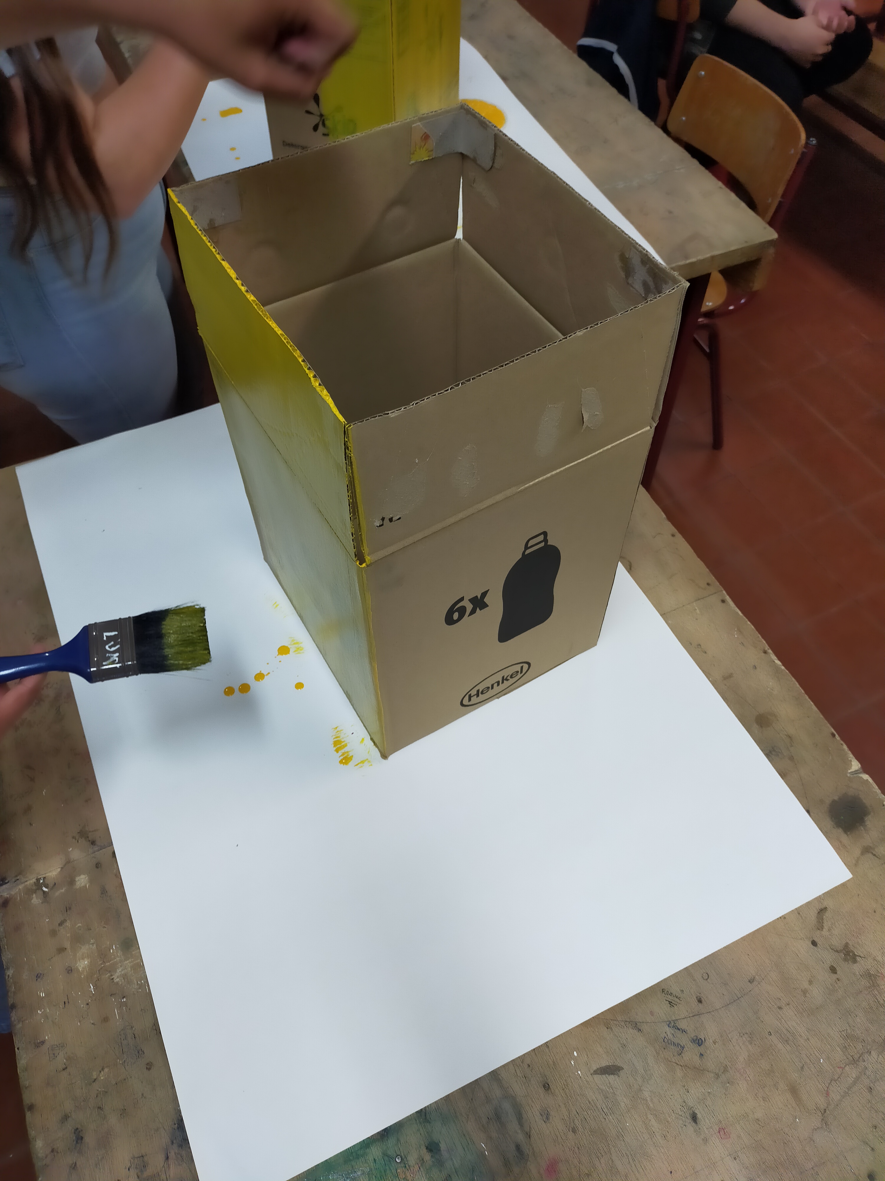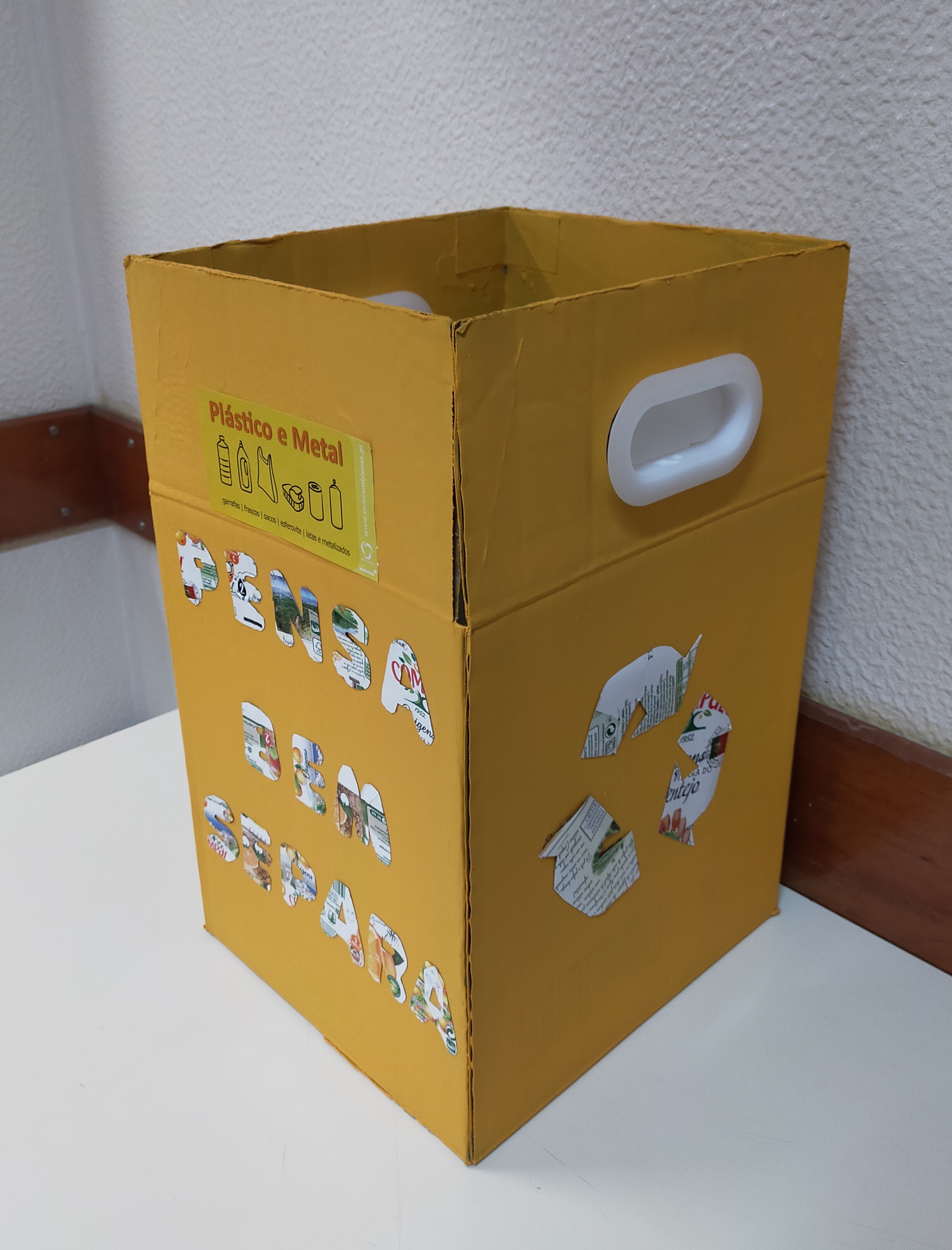 Nas aulas de Oficina de Ciências (turma de Percurso Curricular Alternativo) foi abordada a problemática dos resíduos, a regra dos 3R's, a correta separação dos resíduos nos vários ecopontos e o destino dos resíduos (recicláveis e indiferenciados). Foi também "estudada" a embalagem TetraPak com a pesquisa prática das camadas de material que a compõe e ecoponto para a sua deposição. Entretanto, e fomentando a curiosidade, pesquisou-se o significado do símbolo FSC. De seguida foi lançado o desafio de construir o ecoponto amarelo que mereceu bastante recetividade por parte dos alunos.