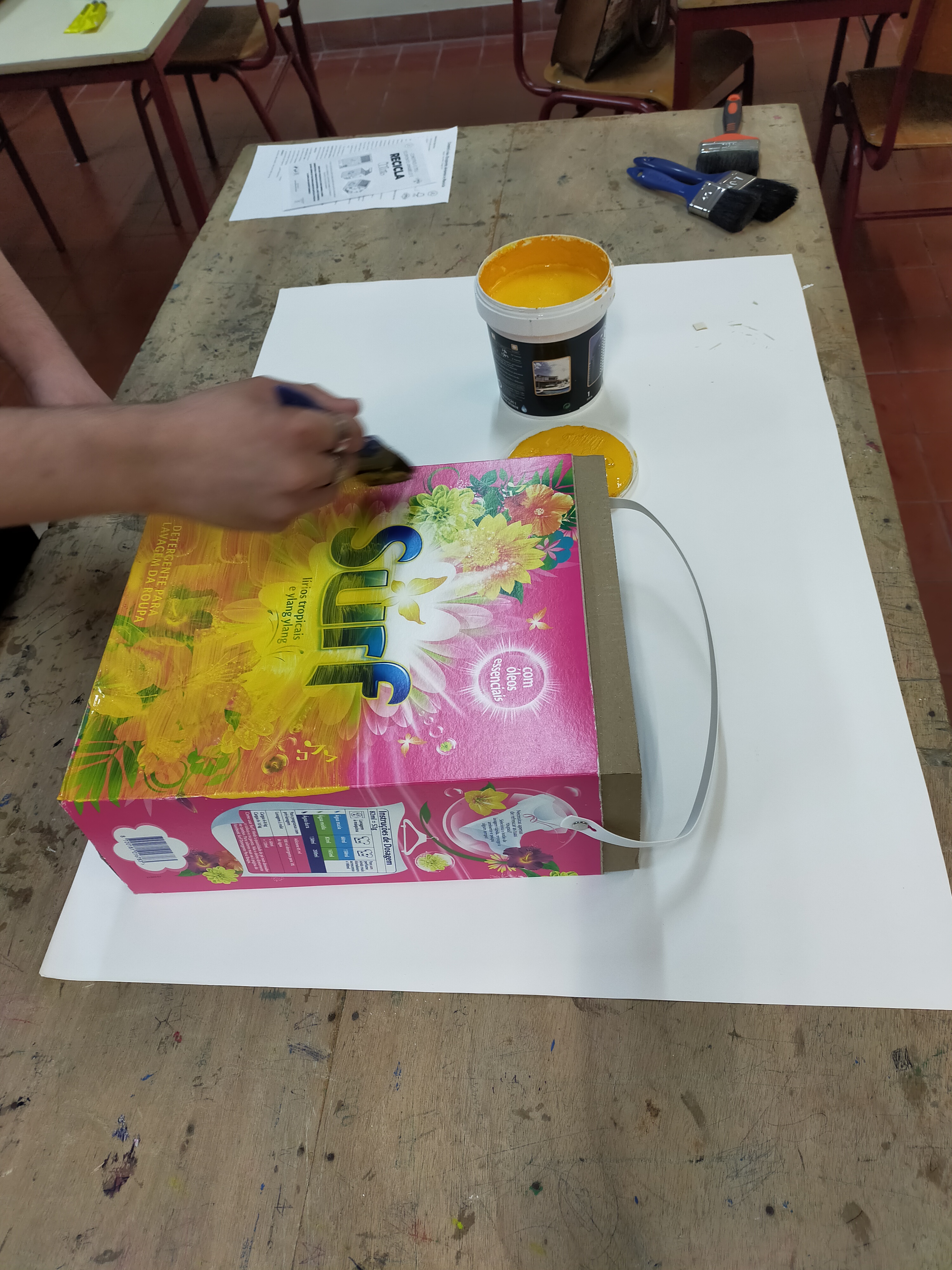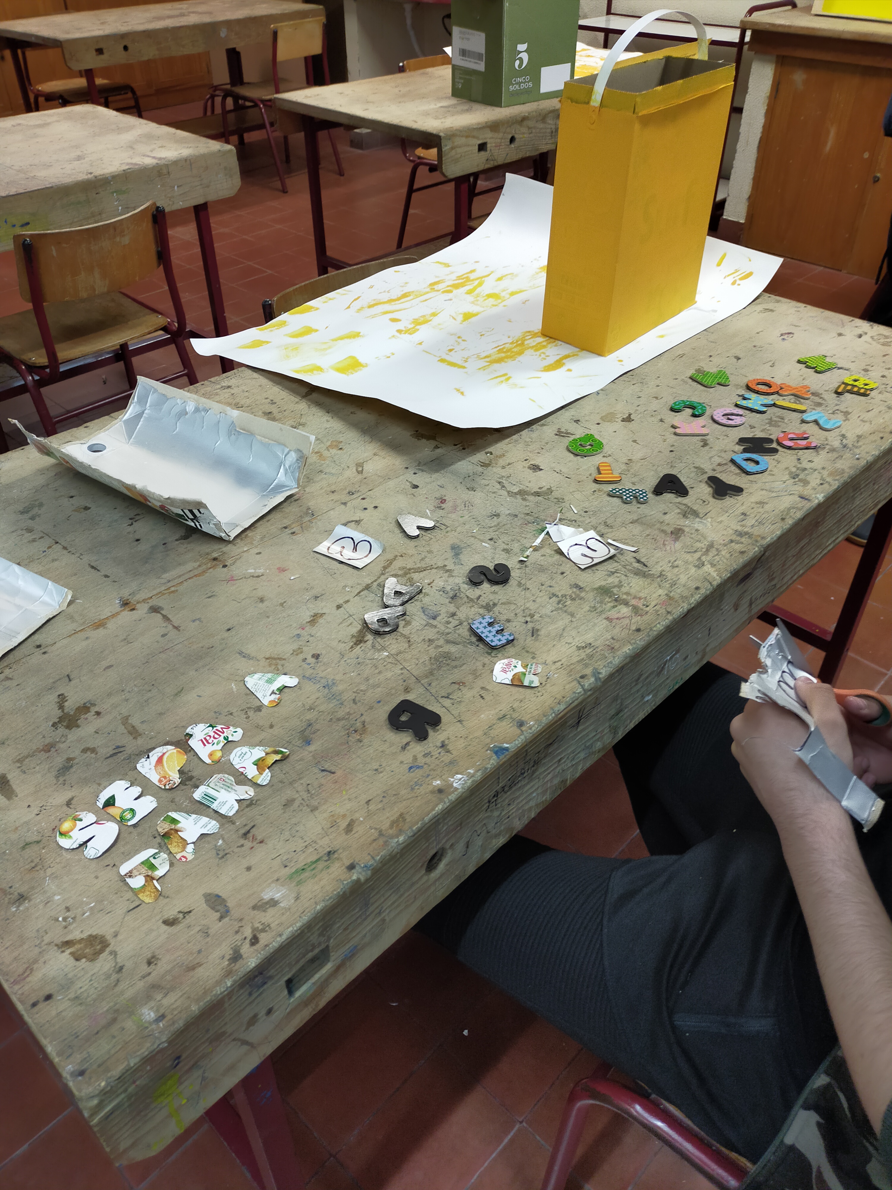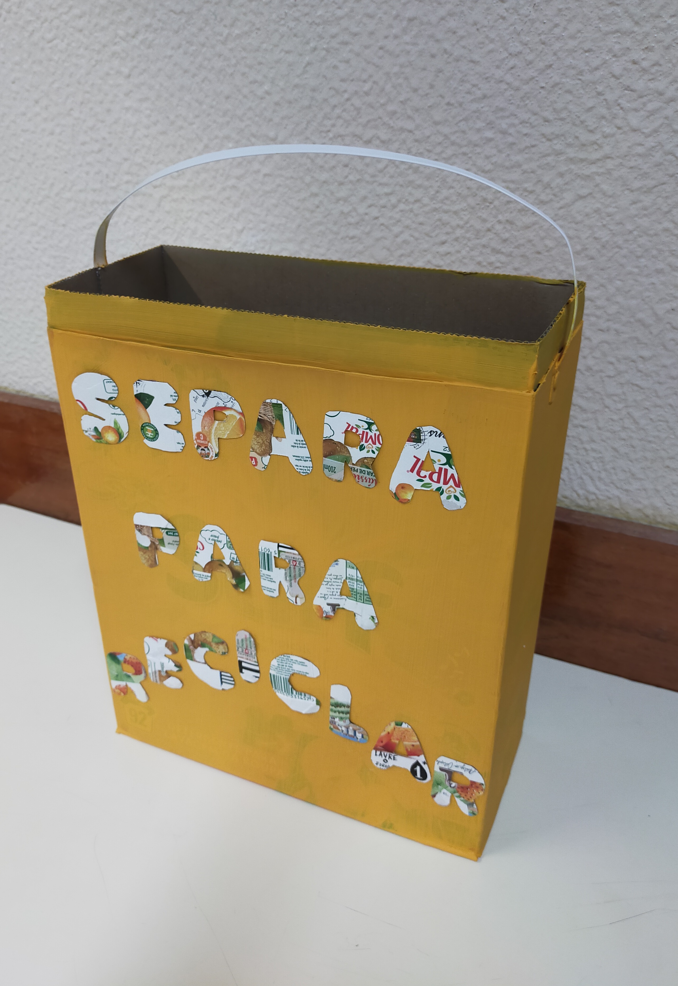 Nas aulas de Oficina de Ciências (turma de Percurso Curricular Alternativo) foi abordada a problemática dos resíduos, a regra dos 3R's, a correta separação dos resíduos nos vários ecopontos e o destino dos resíduos (recicláveis e indiferenciados). Foi também "estudada" a embalagem TetraPak com a pesquisa prática das camadas de material que a compõe e ecoponto para a sua deposição. Entretanto, e fomentando a curiosidade, pesquisou-se o significado do símbolo FSC. De seguida foi lançado o desafio de construir o ecoponto amarelo que mereceu bastante recetividade por parte dos alunos.