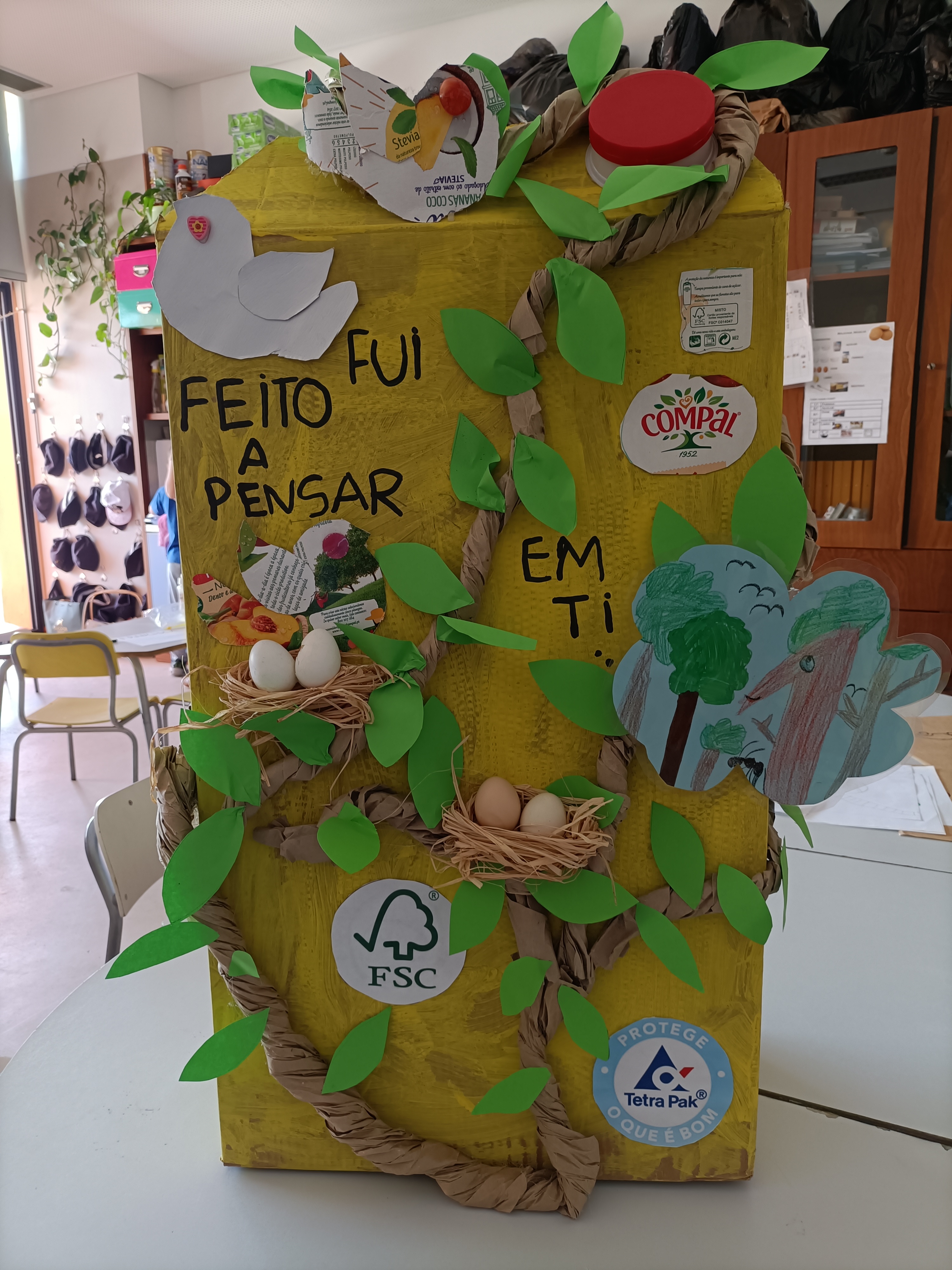 Ficámos mais atentos e percebemos que todos os dias usamos embalagens Tetra Pack. Aprendemos a fazer a leitura dos símbolos das embalagens Tetra Pack e fomos à procura de embalagens com as iniciais “FSC”, aprendendo o seu significado. Ficámos ainda mais curiosos e concluímos que combater as alterações climáticas é o objetivo da Tetra Pack, que juntamente com o gesto simples de todos nós, (utilização dos ecopontos, reciclando), trabalham para reduzir o impacto das embalagens no meio ambiente.